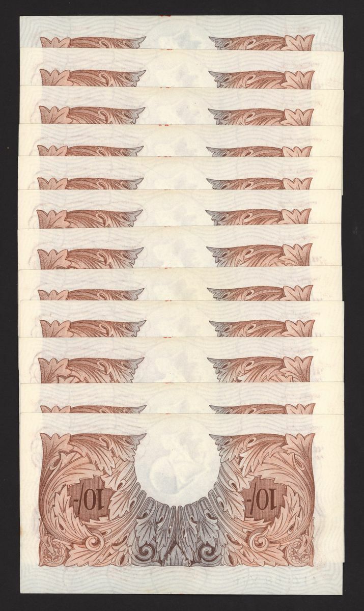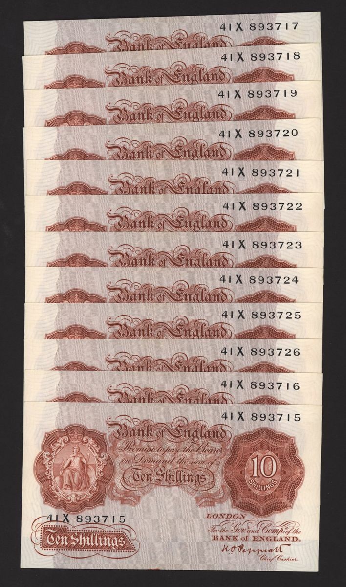 Bank of England, [12 notes] 10 Shillings, London, ND (1934), K. O. Peppiatt, unusual consecutive run of pre-war notes, nos. 41X 893715-893726