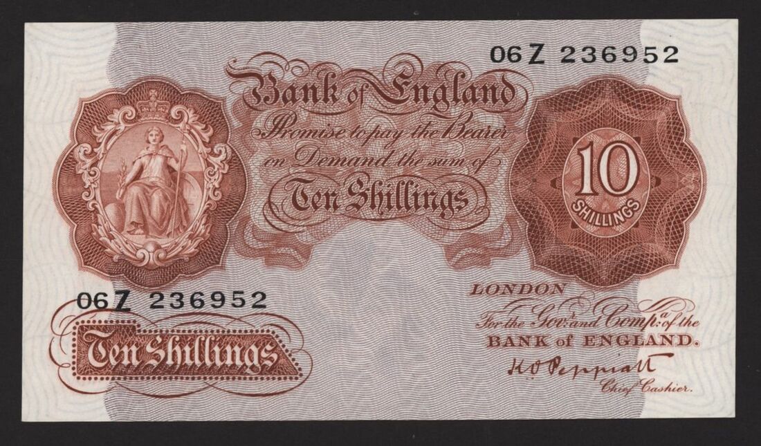 Bank of England, 10 Shillings, London, ND (1934), no. 06Z 236952, K. O. Peppiatt, (Pick 362c, EPM B236), uncirculated