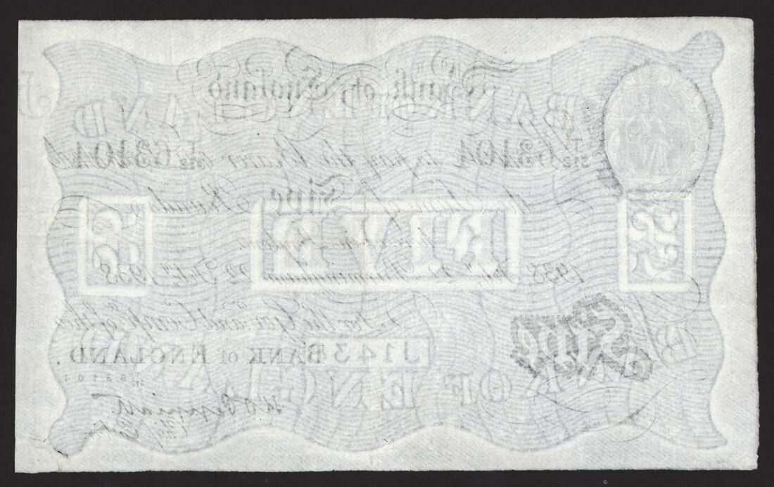 Bank of England, White Note, £5, Birmingham, 22 February 1938, no. T/312 63104, K. O. Peppiatt, (Pick 335e, EPM B241a), good extremely fine
