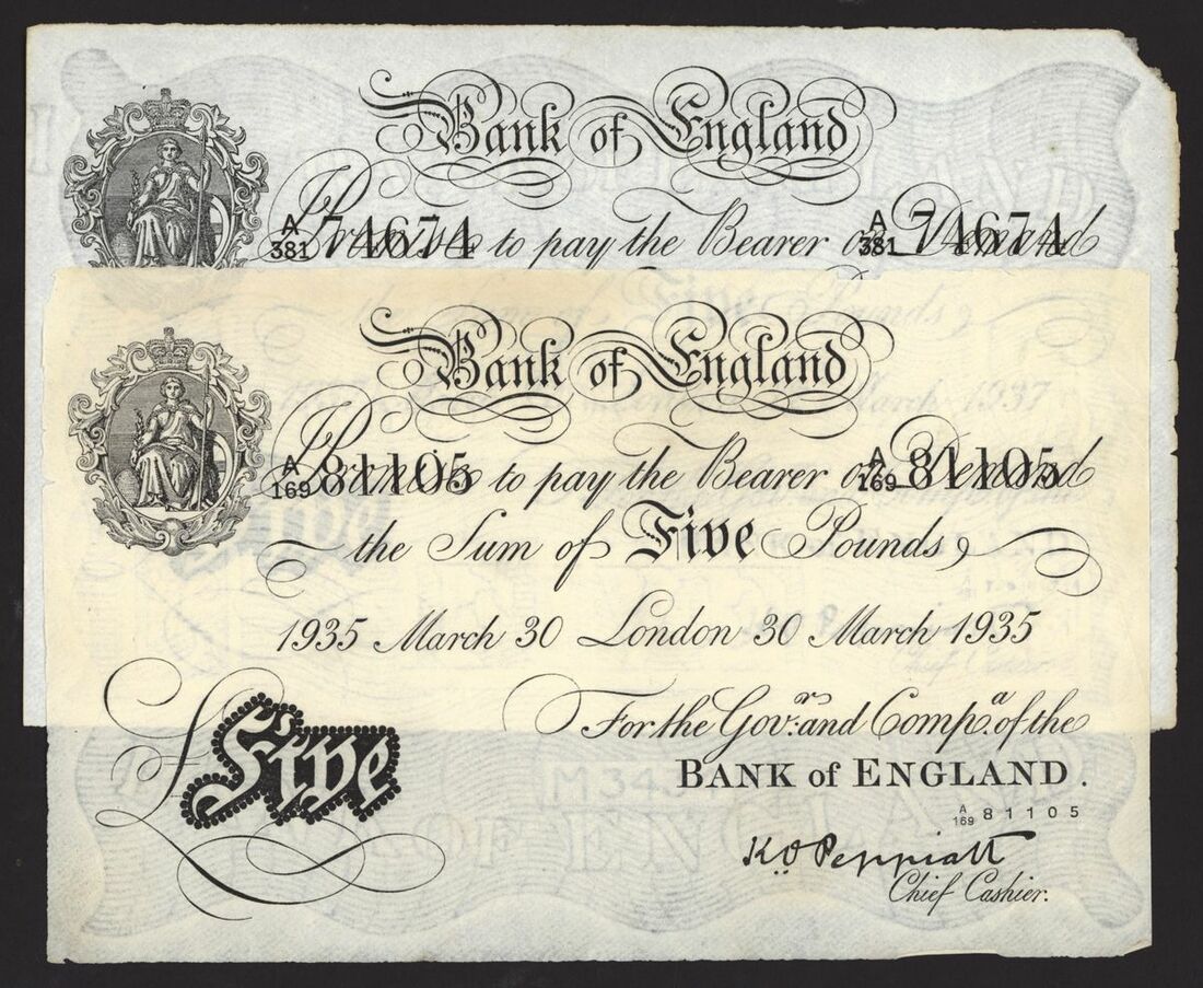 Bank of England, White Note, [3 notes] German forgeries, £5, London, 1935-1937, K. O. Peppiatt,