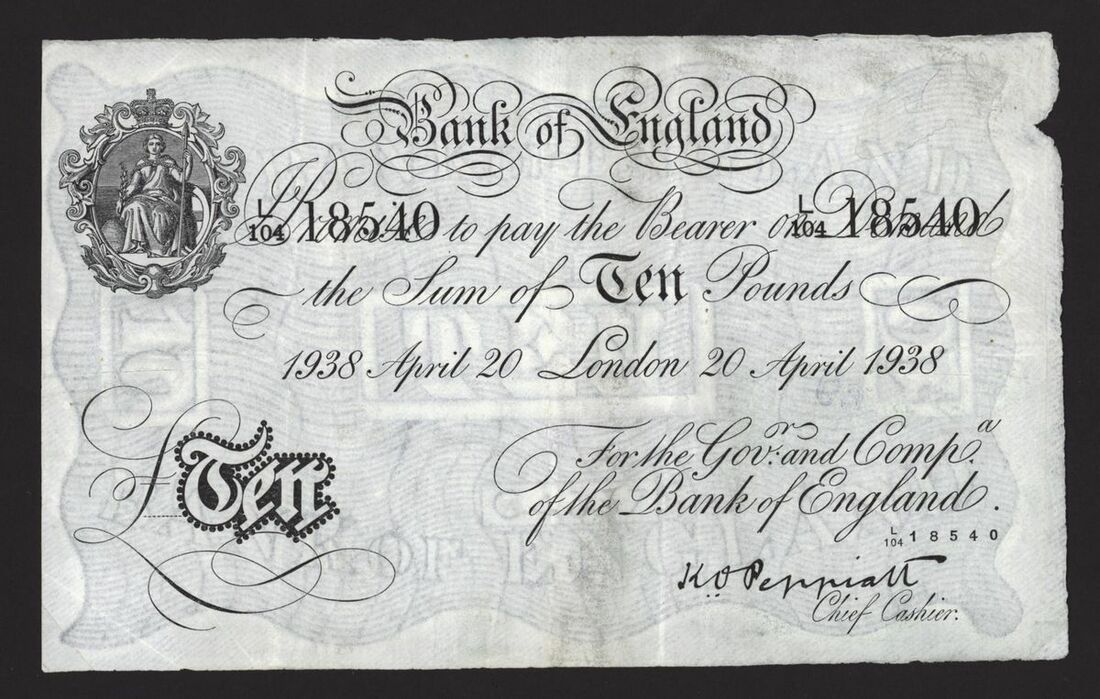 Bank of England, White Note, £10, London, 20 April 1938, no. L/104 18540, K. O. Peppiatt, (Pick 336a, EPM B242), good very fine