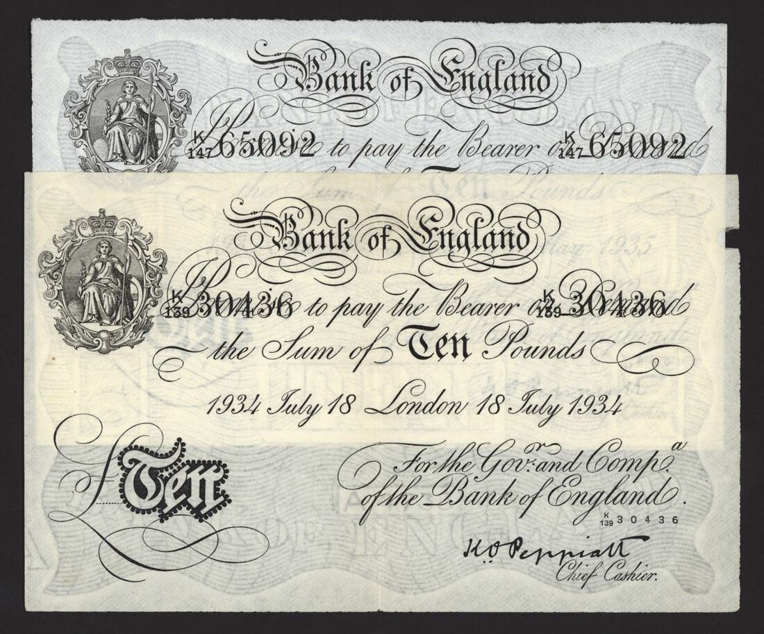 Bank of England, White Note, [2 notes] German forgeries, £10, London, 1934-1935, K. O. Peppiatt,