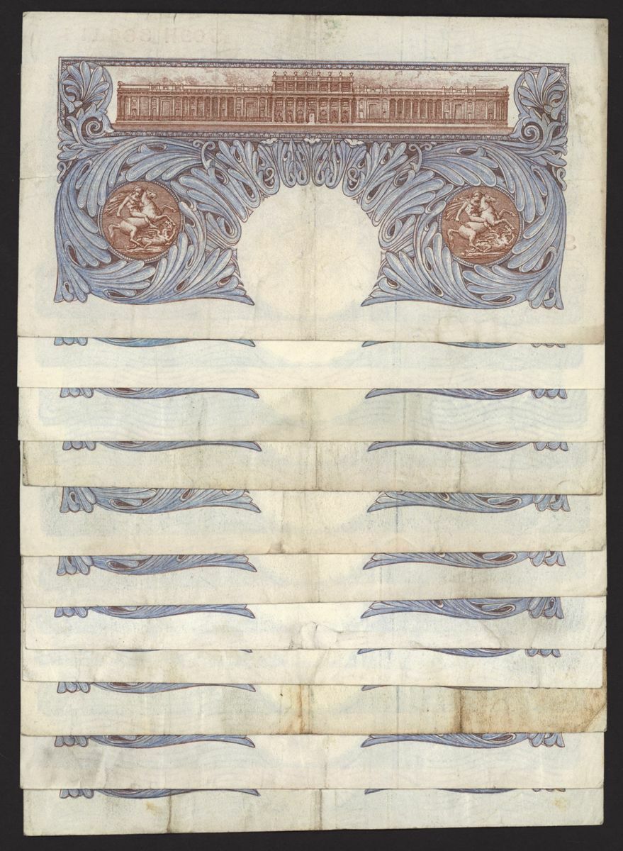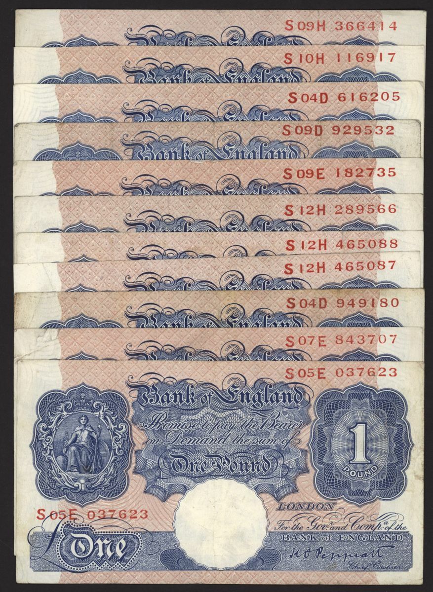 Bank of England, [11 notes] £1, London, ND (1940), K. O. Peppiatt, emergency issue, includes replacement notes SD, SE, and SH and two consecutive, scarce