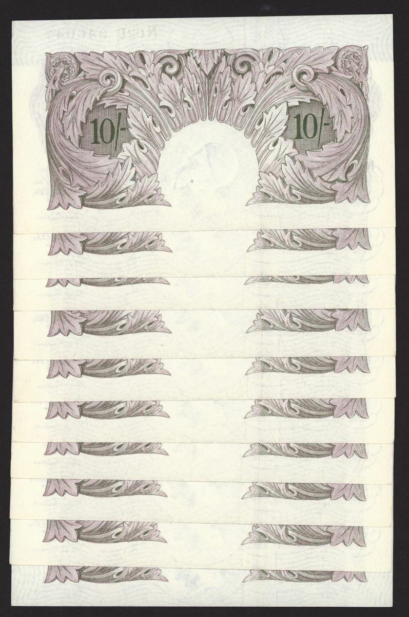 Bank of England, [10 notes] 10 Shillings, London, ND (1940), K. O. Peppiatt, mauve emergency war issue, consecutive run, nos. N02D 846031-846040