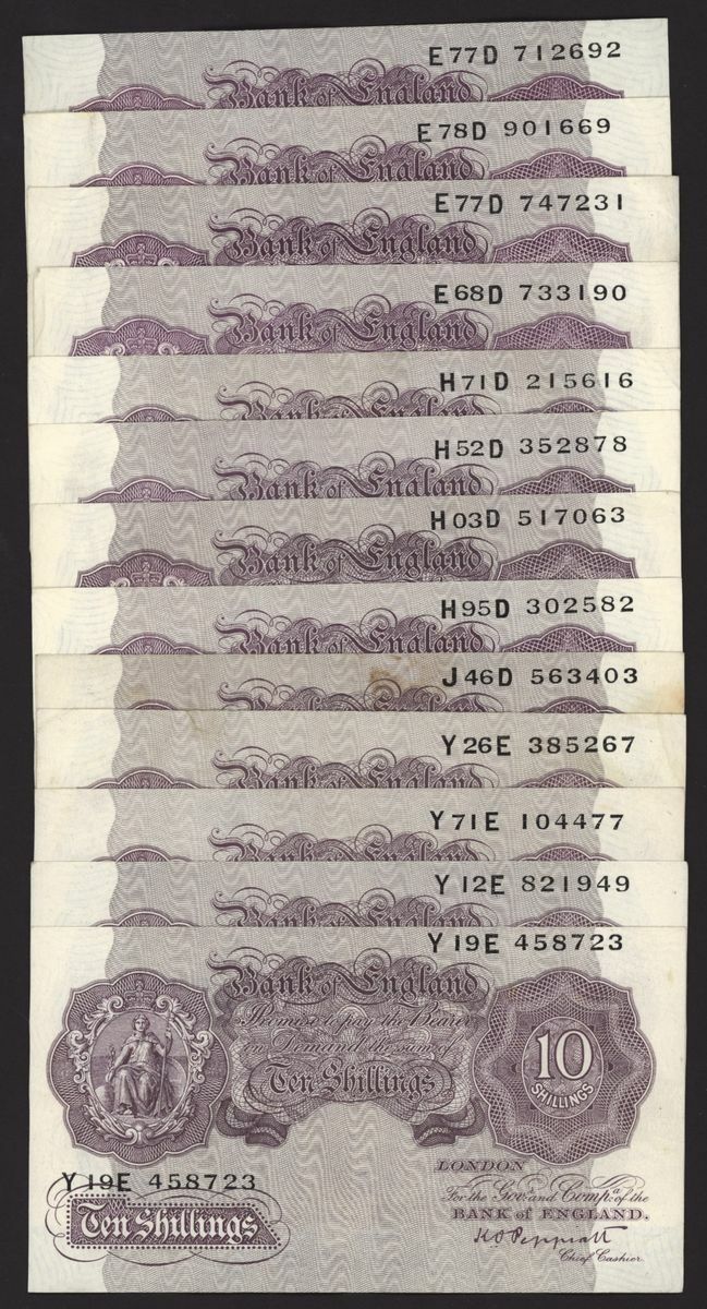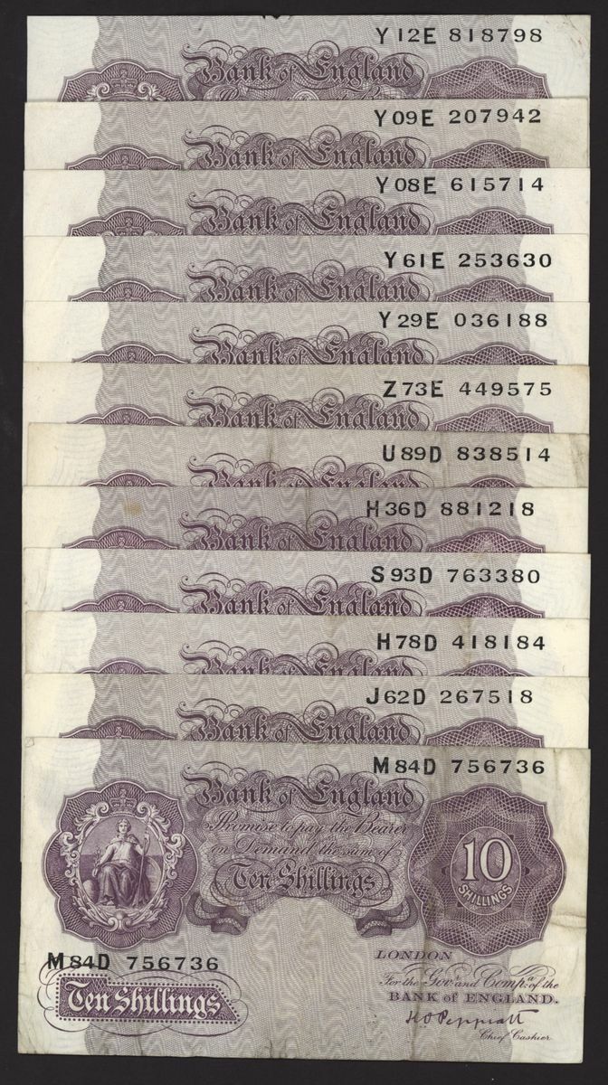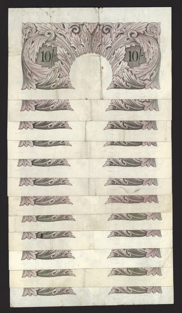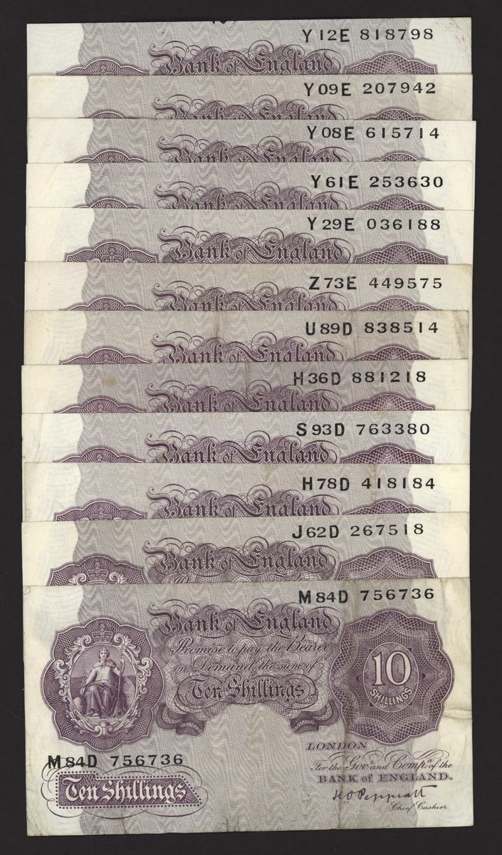 Bank of England, [50 notes] 10 Shillings, London, ND (1940), K. O. Peppiatt, mauve emergency war issue, (Pick 362c, EPM B251), very fine to good very fine (50 notes)
