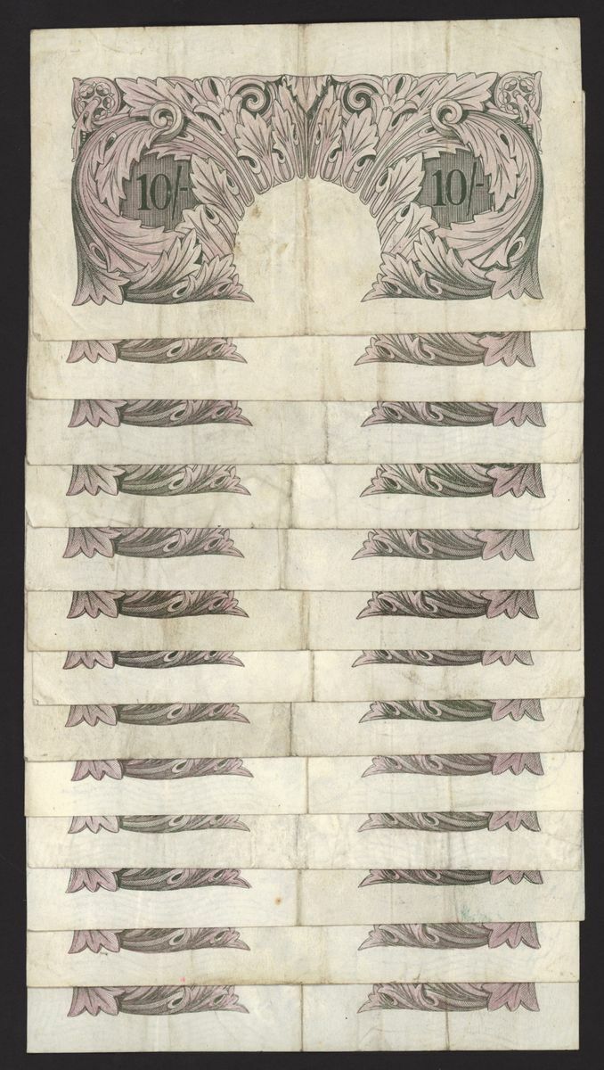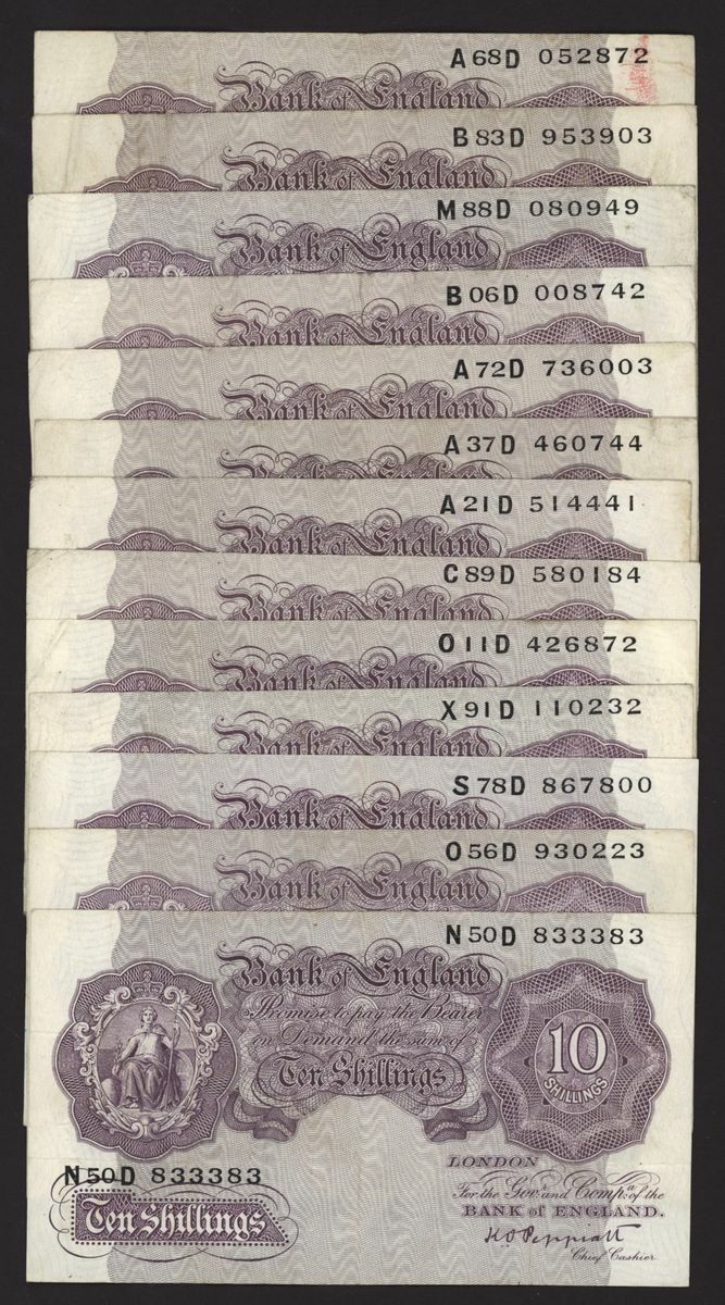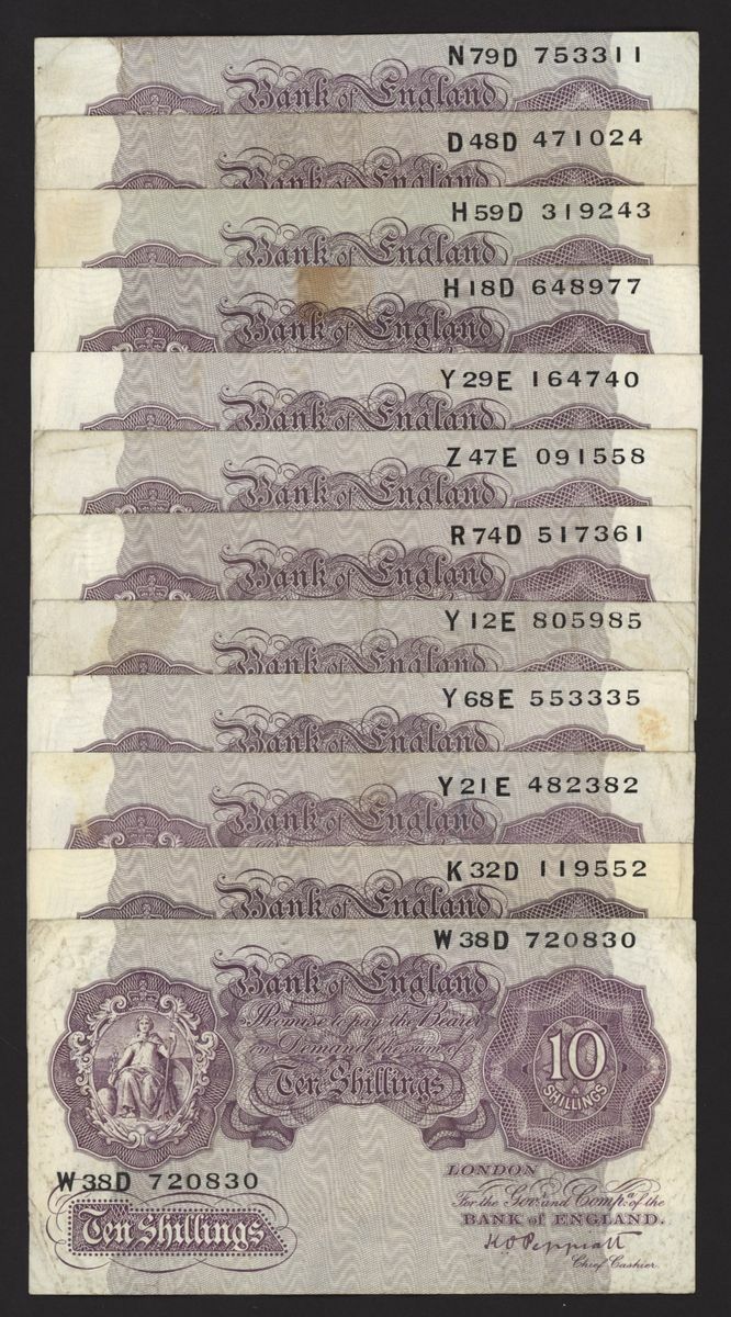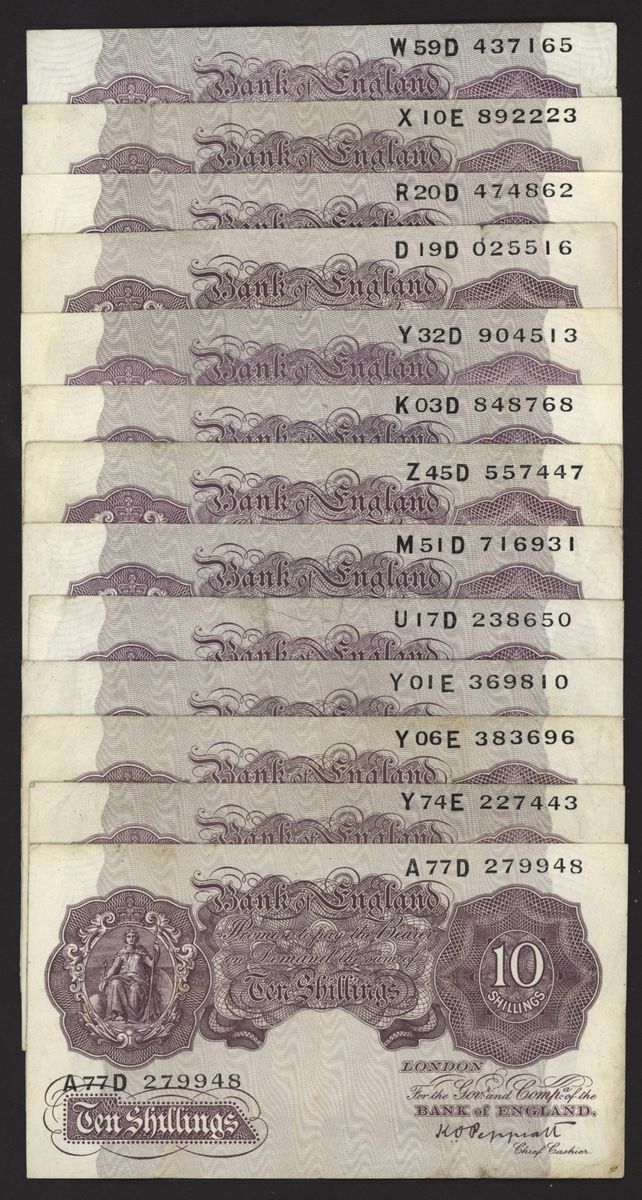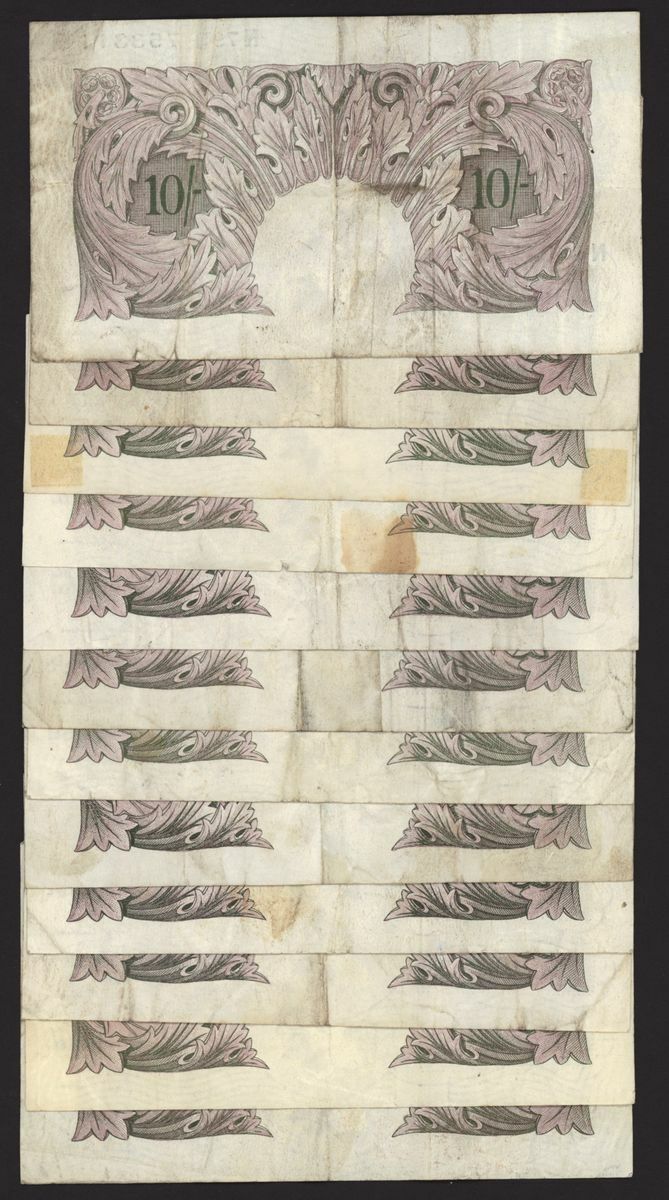 Bank of England, [50 notes] 10 Shillings, London, ND (1940), K. O. Peppiatt, mauve emergency war issue, (Pick 362c, EPM B251), very fine to good very fine (50 notes)