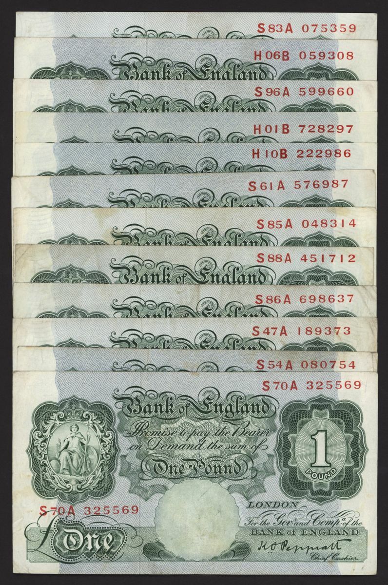 Bank of England, [29 notes] £1, London, ND (1948), K. O. Peppiatt, first threaded issue, first series SA including 5 consecutives and 2 overlaps, and last series HB including pair
