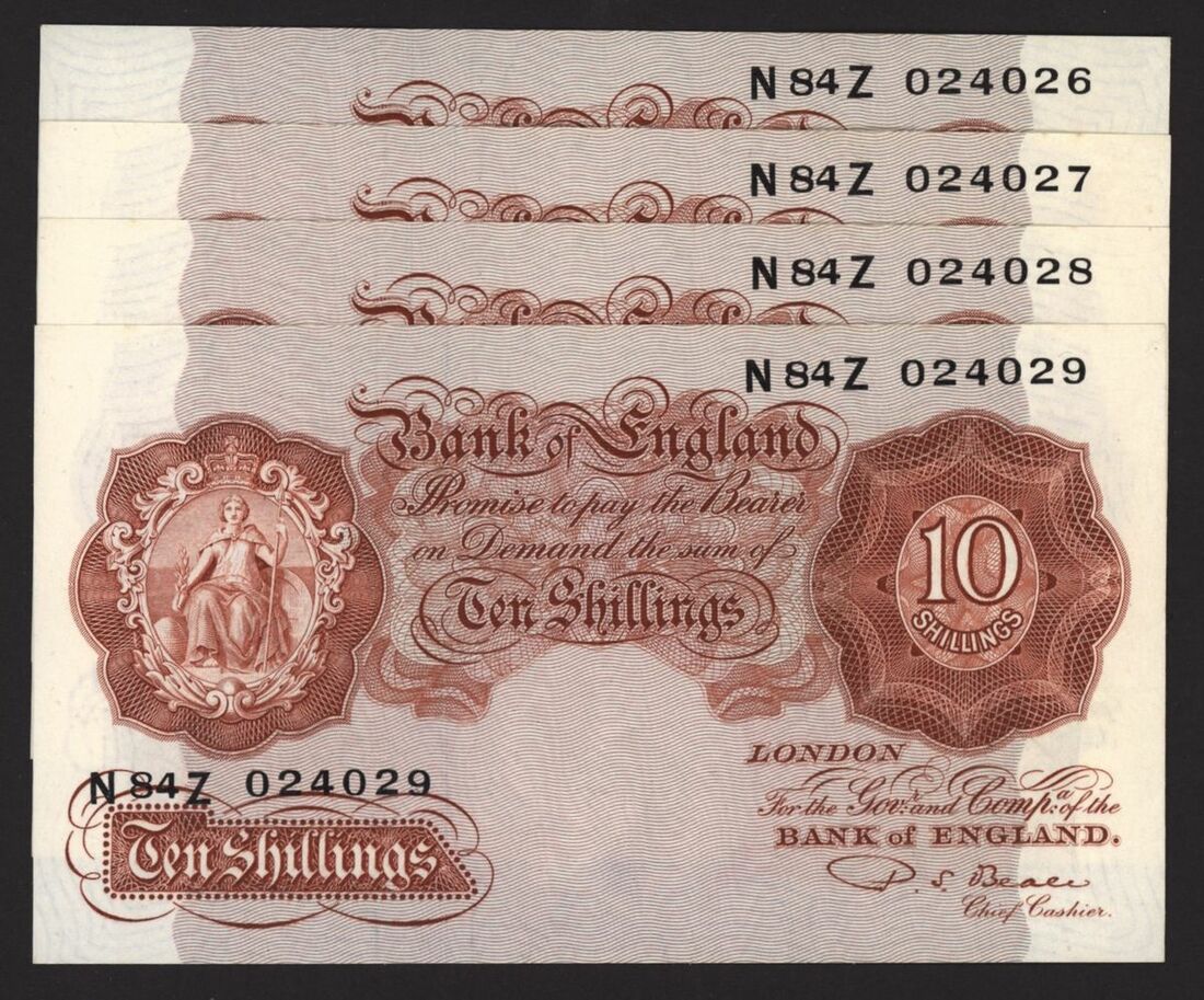 Bank of England, [4 notes] 10 Shillings, London, ND (1950), P. S. Beale, consecutive run, nos. N84Z 024026-024029