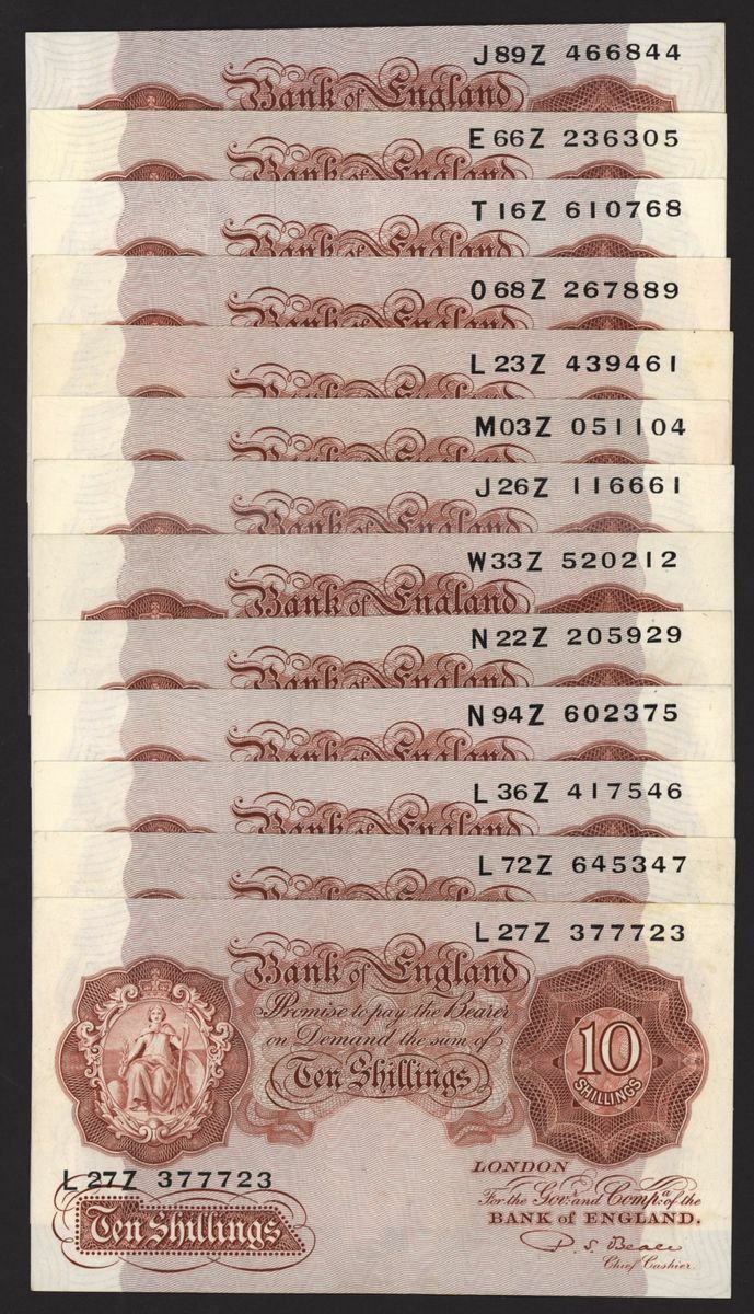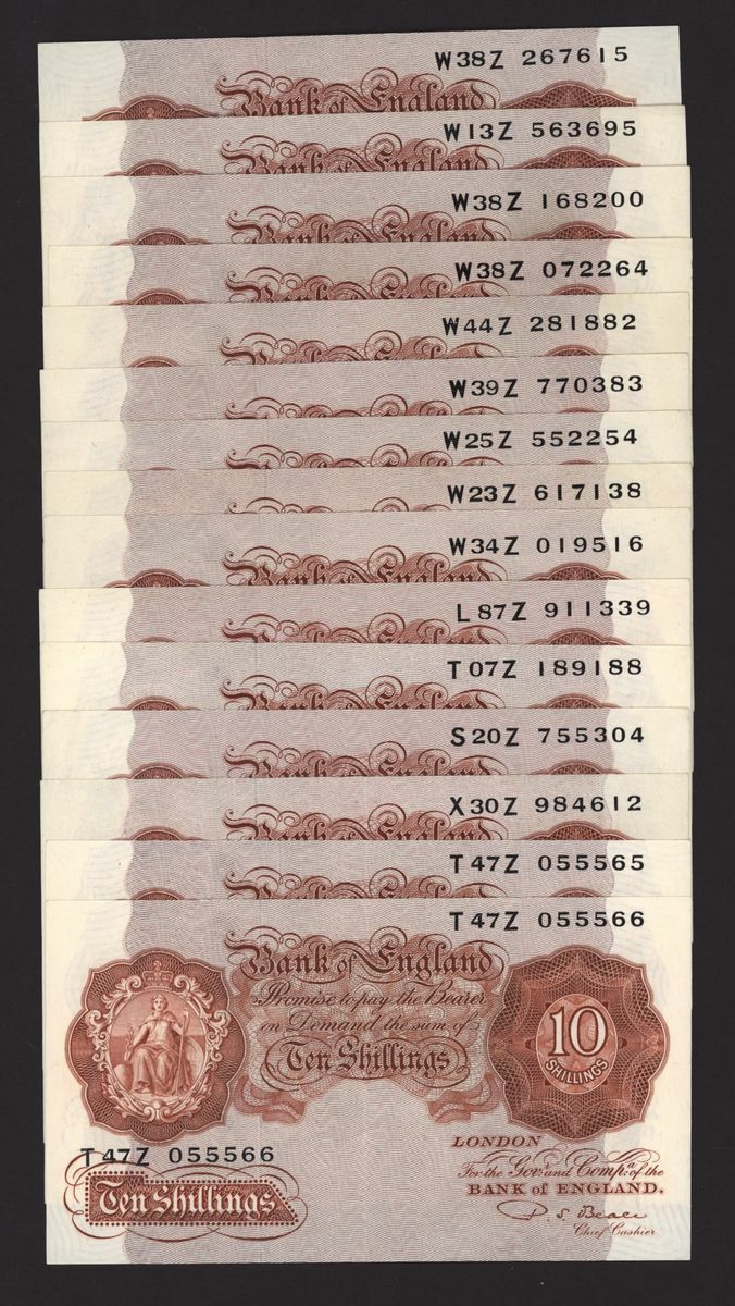 Bank of England, [28 notes] 10 Shillings, London, ND (1950), P. S. Beale, (Pick 368b, EPM B266), extremely fine (28 notes)