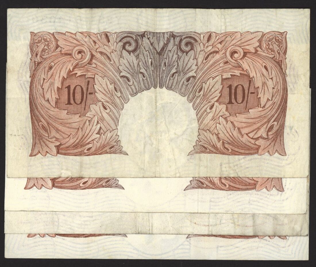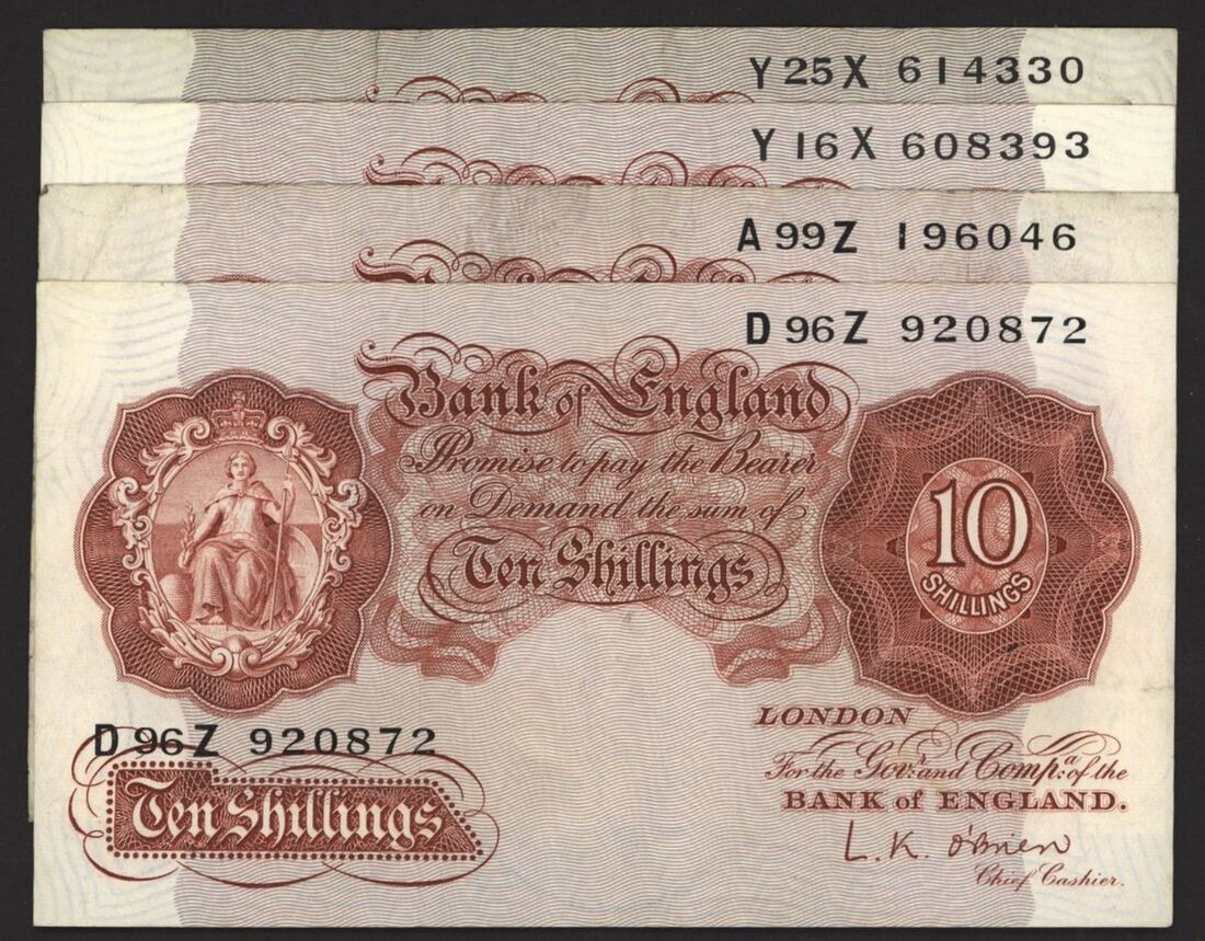 Bank of England, [4 notes] 10 Shillings, London, ND (1955), L. K. O'Brien, first series, last serial,