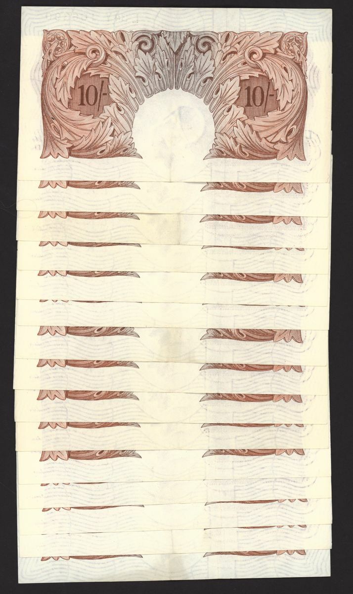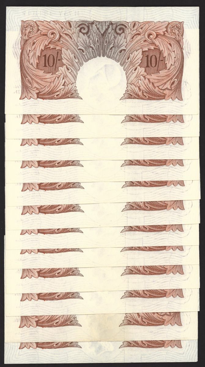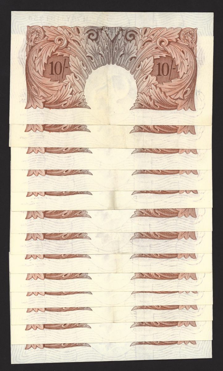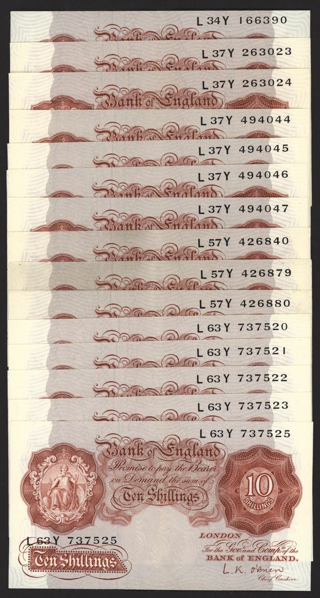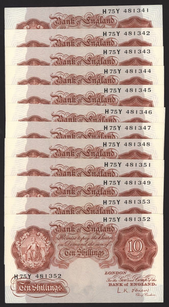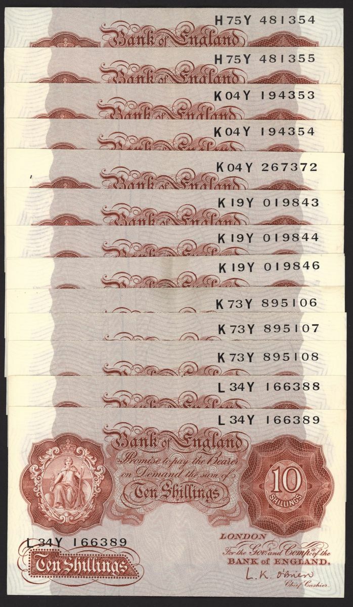 Bank of England, [42 notes] 10 Shillings, London, ND (1955), L. K. O'Brien, various short runs and consecutive pairs, series HY, KY, LY