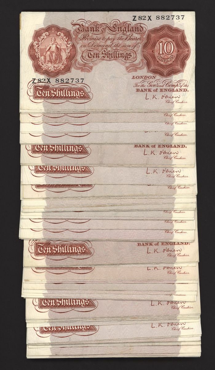 Bank of England, [100 notes] 10 Shillings, London, ND (1955), L. K. O'Brien, (Pick 368c, EPM B271), very fine to good very fine (100 notes)