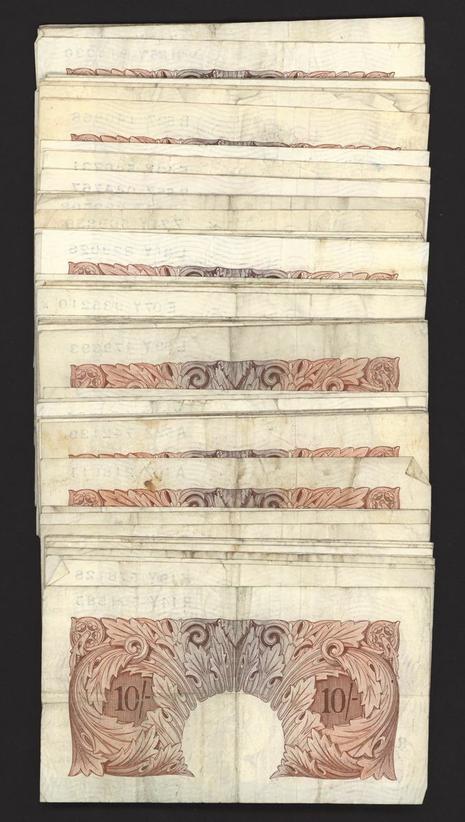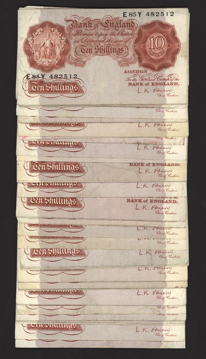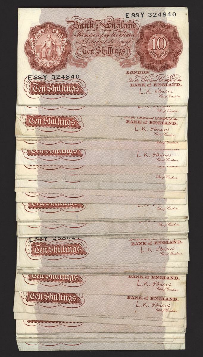 Bank of England, [130 notes] 10 Shillings, London, ND (1955), L. K. O'Brien, (Pick 368c, EPM B271), fine to good very fine (130 notes)