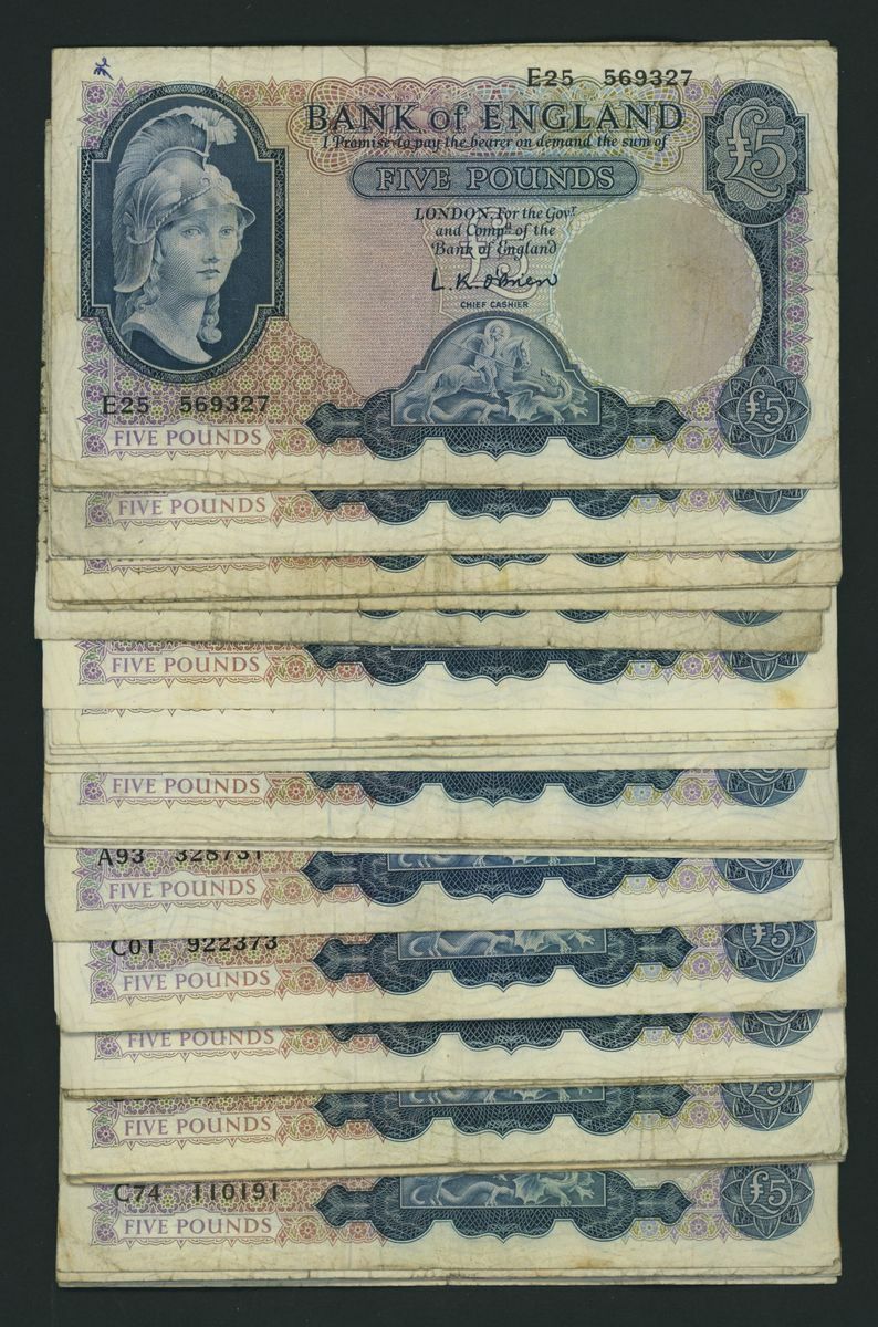 Bank of England, [50 notes] £5, London, ND (1957), L. K. O'Brien, (Pick 371a, EPM B277), very good to fine (50 notes)