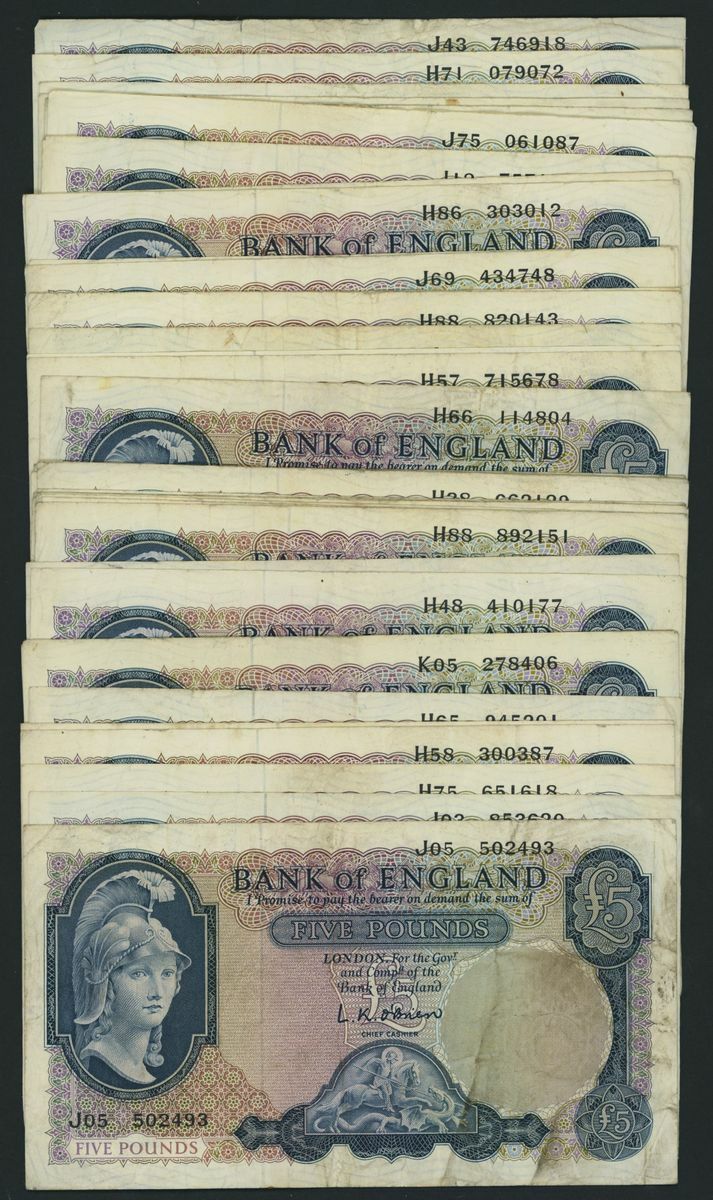 Bank of England, [40 notes] £5, London, ND (1961), L. K. O'Brien, (Pick 372a, EPM B280), very good to very fine (40 notes)