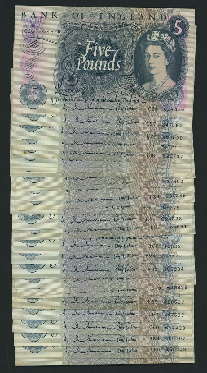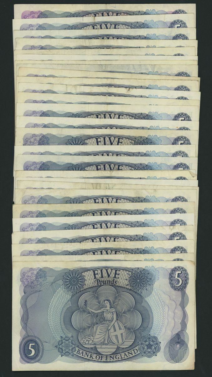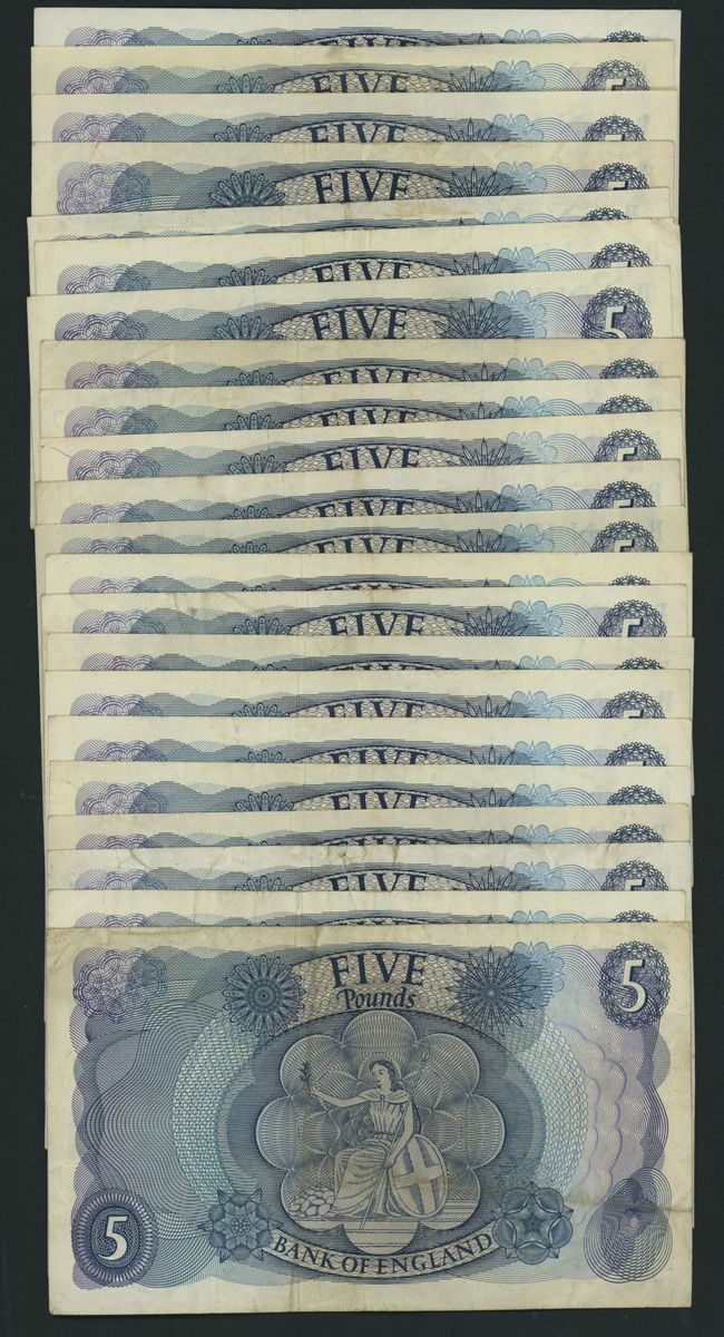 Bank of England, [50 notes] £5, London, ND (1963), J. Q. Hollom, (Pick 375a, EPM B297), mostly very fine (50 notes)