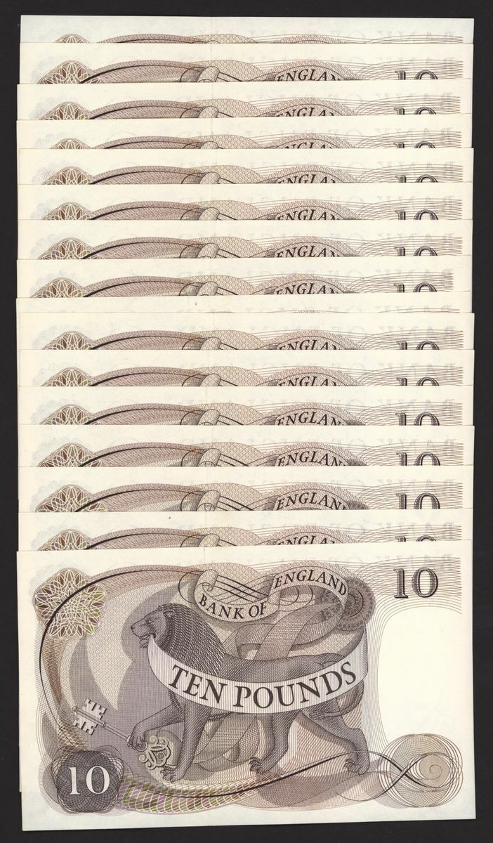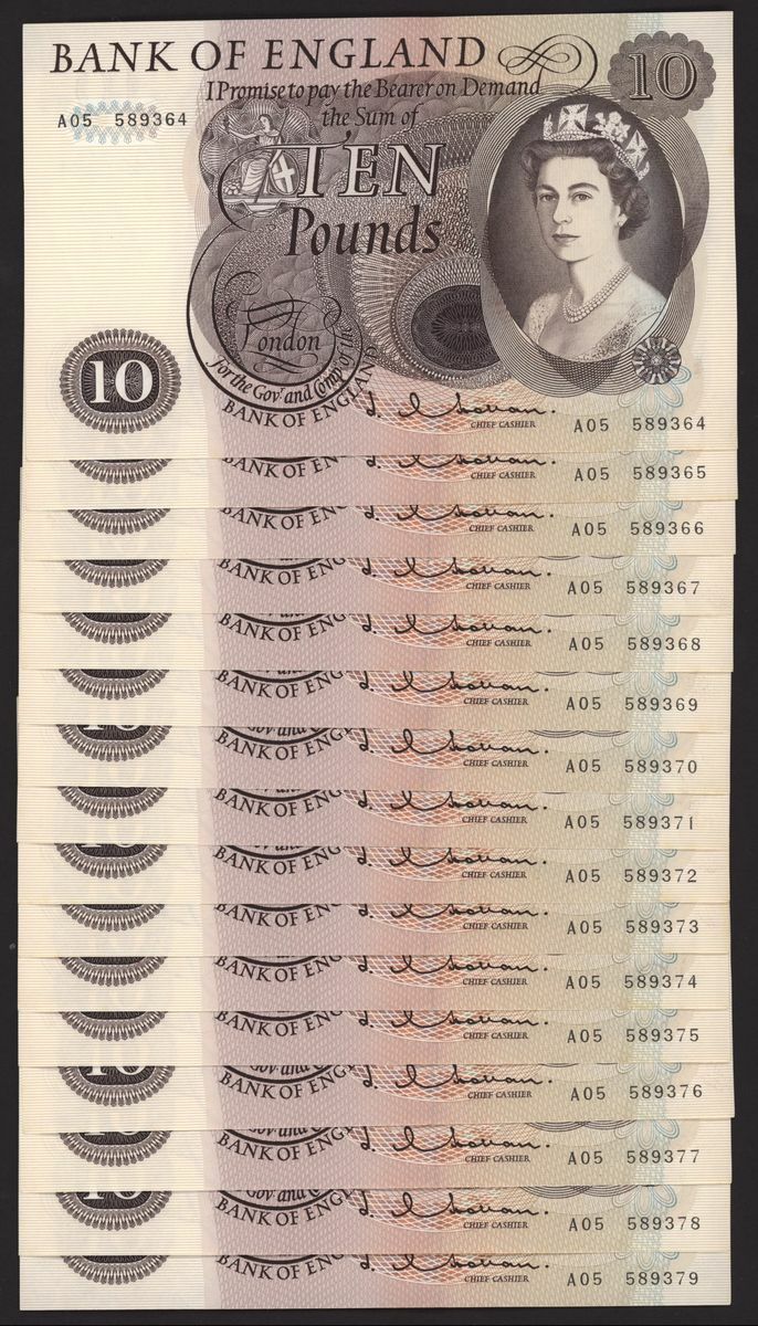 Bank of England, [16 notes] £10, London, ND (1964), J. Q. Hollom, consecutive run, nos. A05 589364-589379