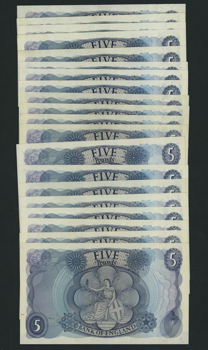 Bank of England, [20 notes] £5, London, ND (1967), J. S. Fforde, includes some consecutive