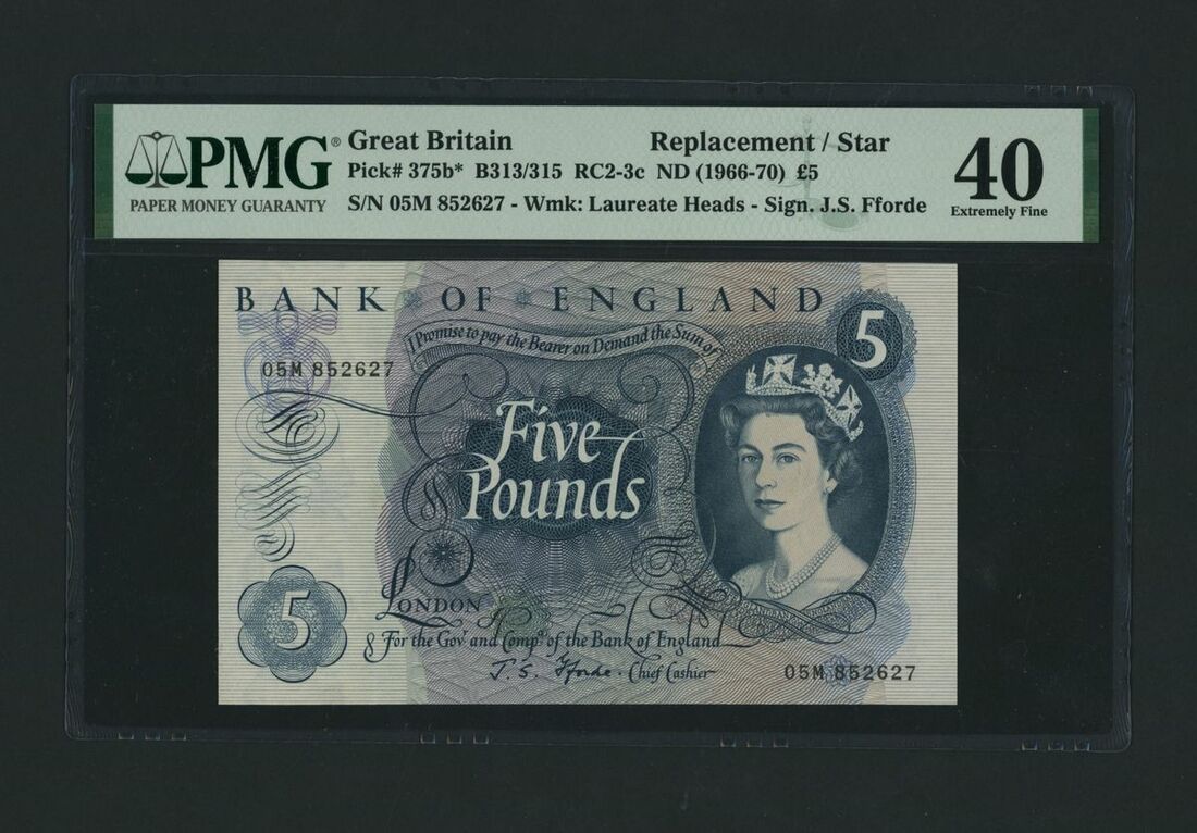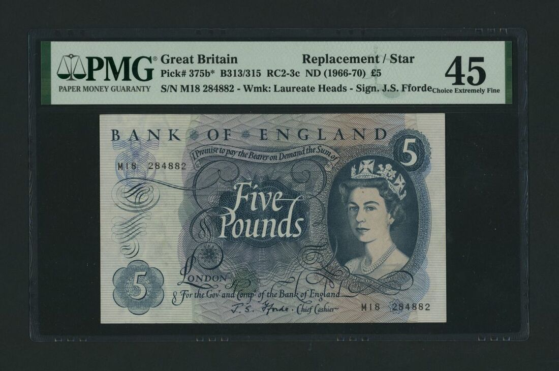 Bank of England, [2 notes] £5, London, ND (1966-1970), J. S. Fforde, replacement issues,