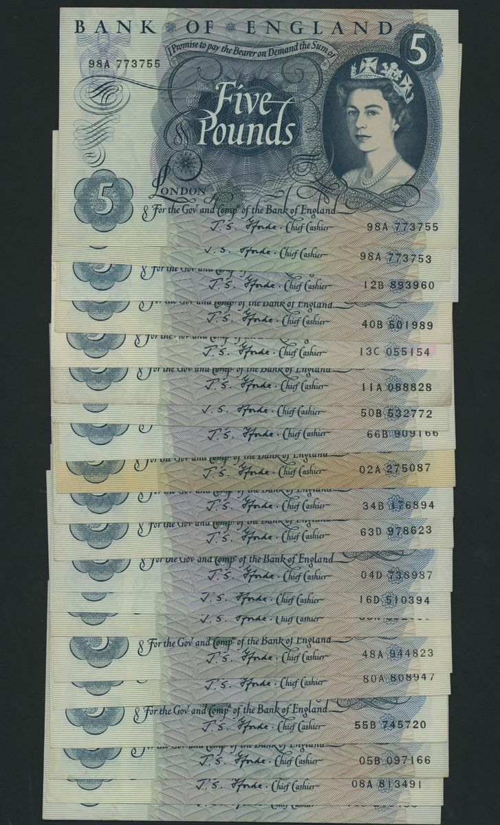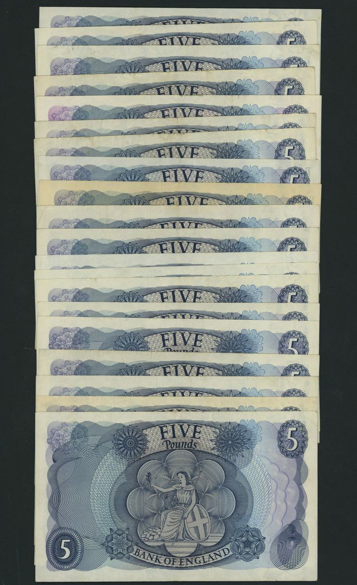 Bank of England, [20 notes] £5, London, ND (1967), J. S. Fforde, (Pick 375b, EPM B314), mostly very fine (20 notes)