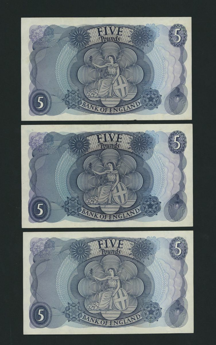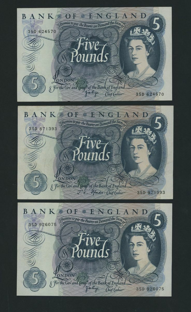 Bank of England, [3 notes] £5, London, ND (1967-1971), J. S. Fforde and J. B. Page,