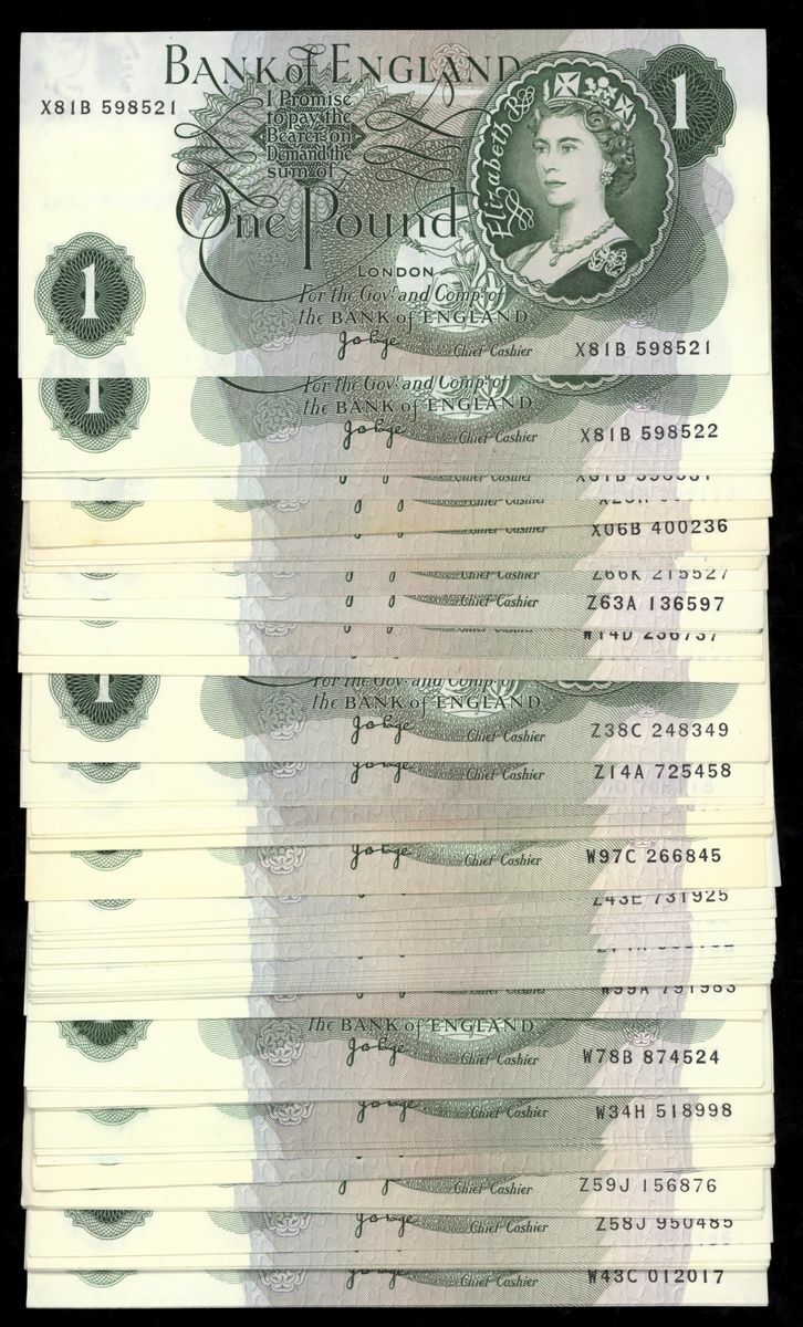 Bank of England, [100 notes] £1, London, ND (1970), J. B. Page, includes some consecutives