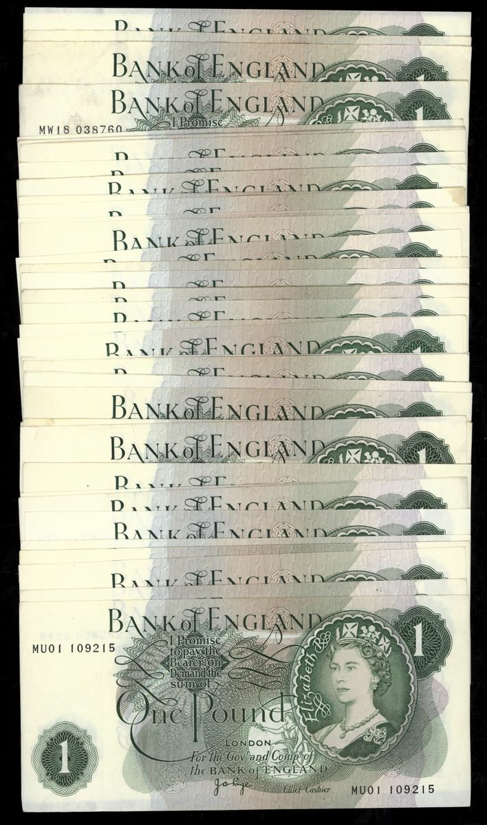 Bank of England, [60 notes] £1, London, ND (1970), J. B. Page, replacement issues, includes prefix MU01, some consecutives