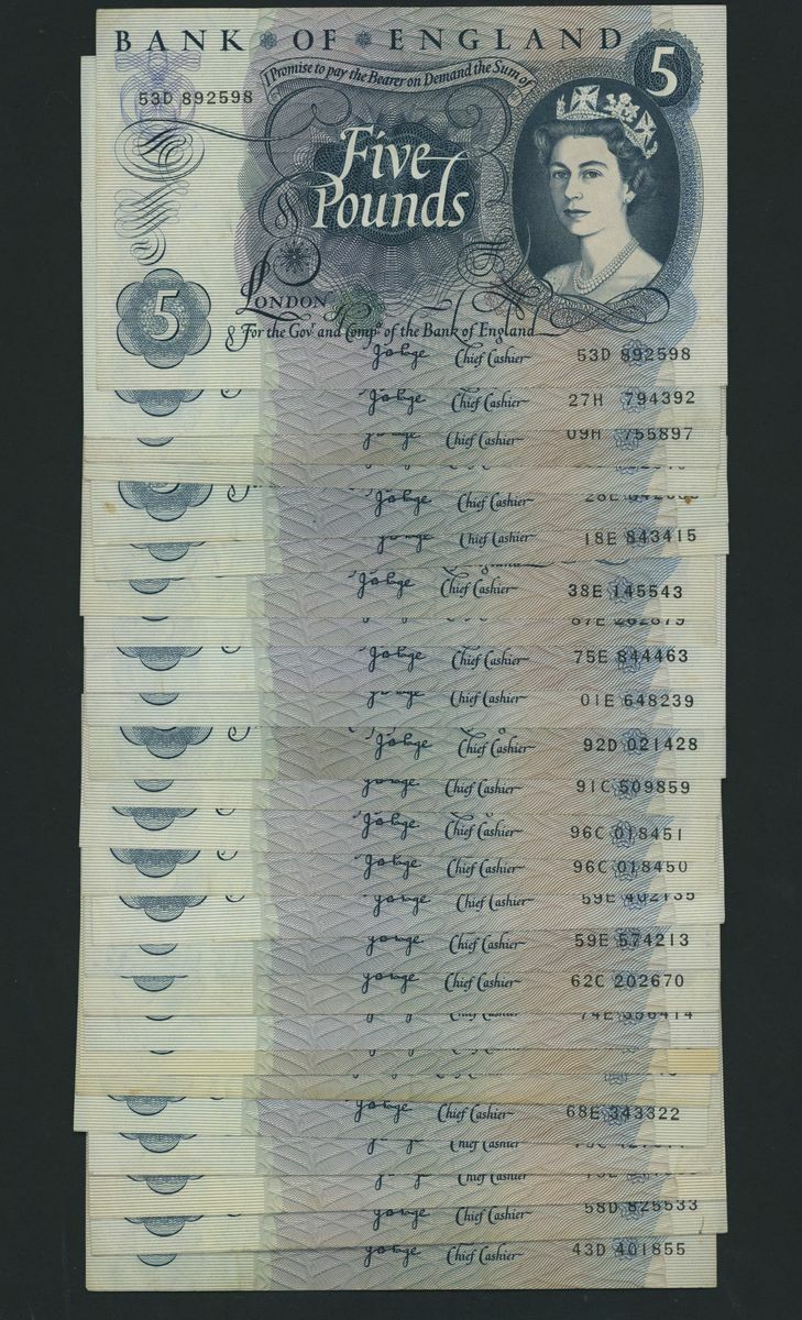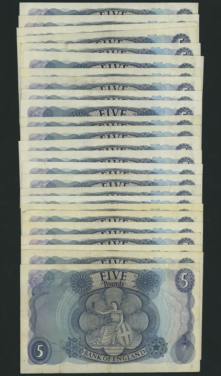 Bank of England, [25 notes] £5, London, ND (1971), J. B. Page, (Pick 375c, EPM B324), very fine to extremely fine (25 notes)