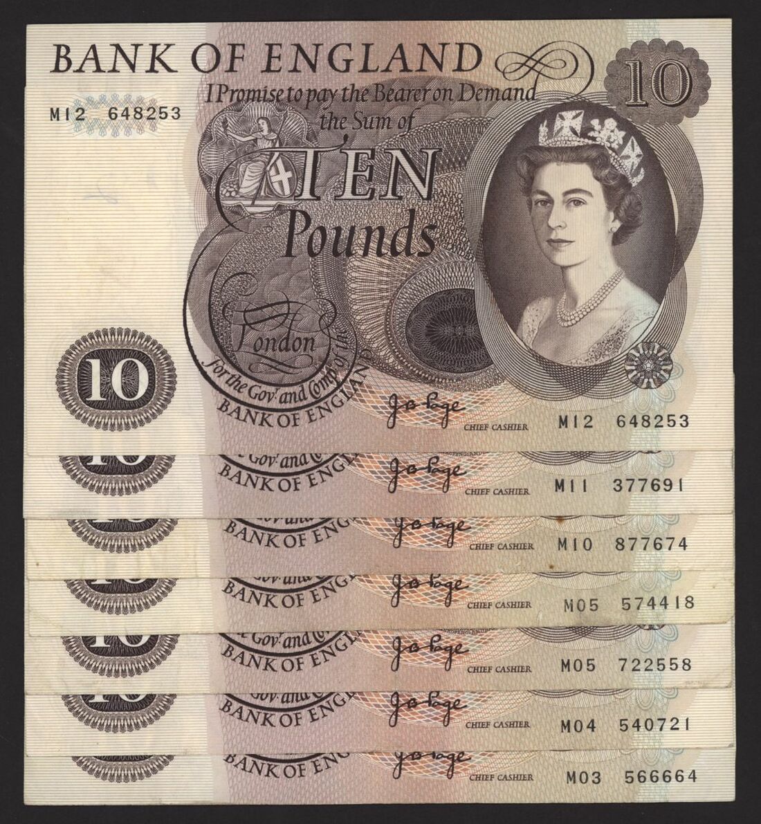 Bank of England, [7 notes] £10, London, ND (1971), J. B. Page, replacement issues,