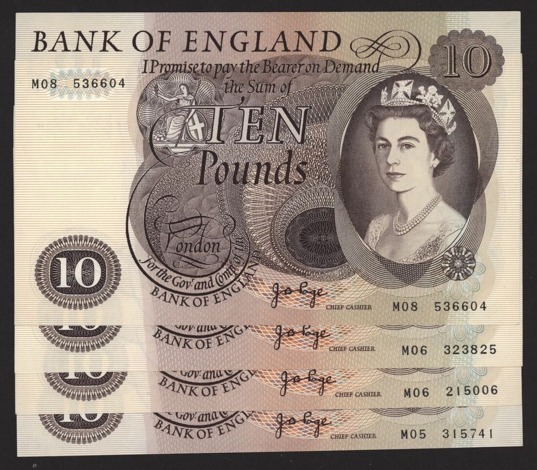 Bank of England, [4 notes] £10, London, ND (1971), J. B. Page, replacement issues,