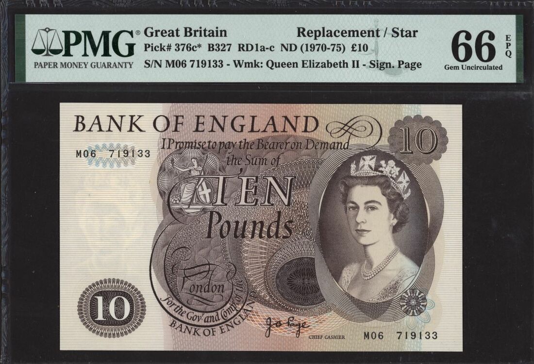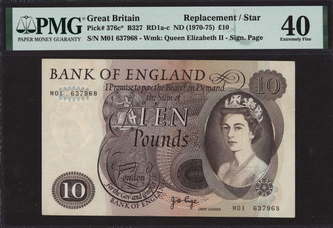 Bank of England, [2 notes] £10, London, ND (1971), J. B. Page, replacement issues prefix M, serial numbers M01 637968 and M06 719133