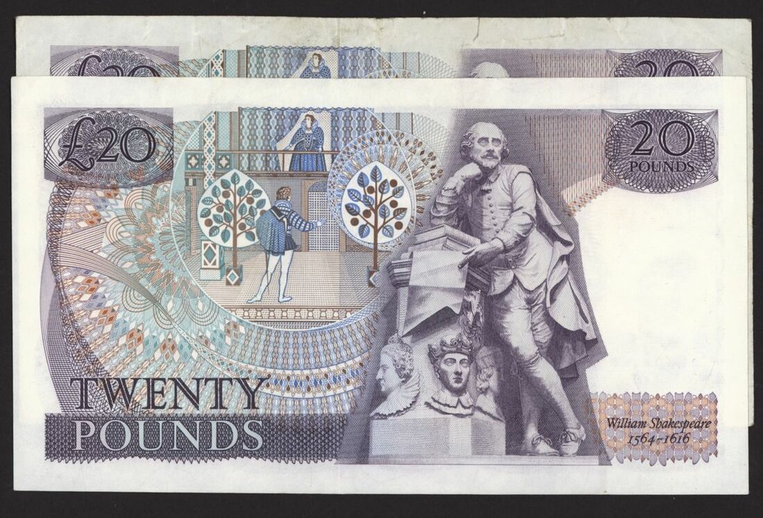 Bank of England, [2 notes] £20, London, ND (1970), J. B. Page, replacement prefixes, first run no. M01 555119, and no. M03 864013