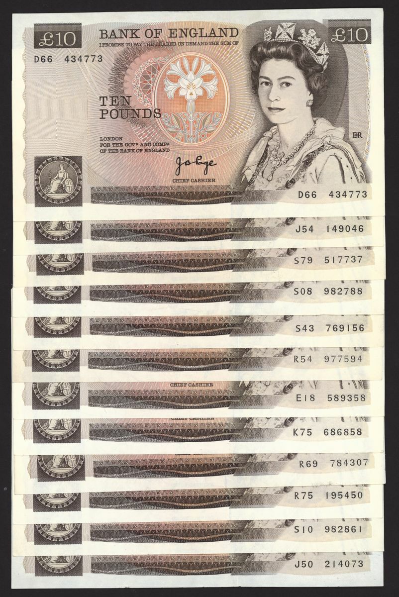 Bank of England, [25 notes] £10, London, ND (1975), J. B. Page, (Pick 379a, EPM B330), extremely fine (25 notes)