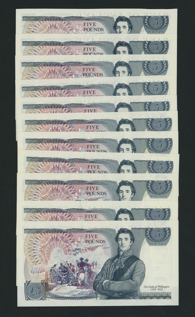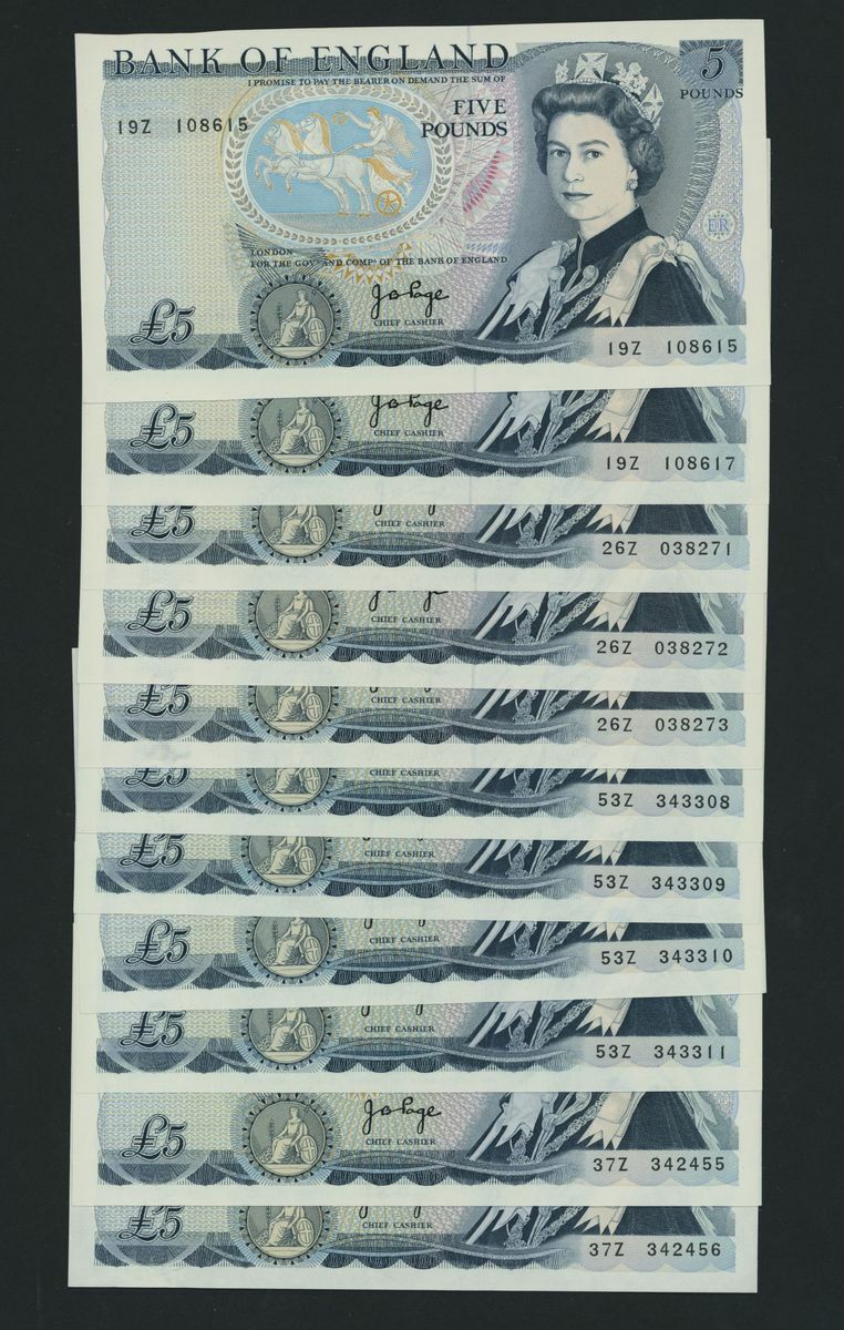 Bank of England, [12 notes] £5, London, ND (1973), J. B. Page, last series prefix Z in consecutive pairs and runs