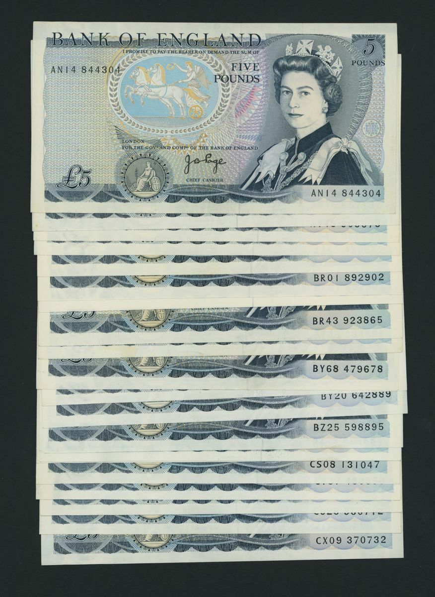 Bank of England, [50 notes] £5, London, ND (1973), J. B. Page, (Pick 378b, EPM B336), extremely fine to uncirculated (50 notes)