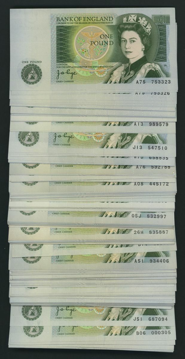 Bank of England, [250 notes] £1, London, ND (1978), J. B. Page, includes consecutive runs