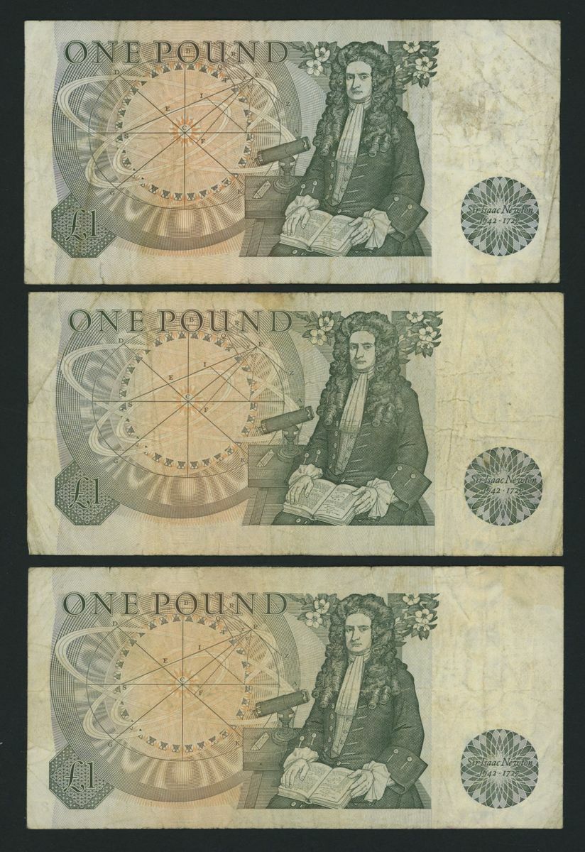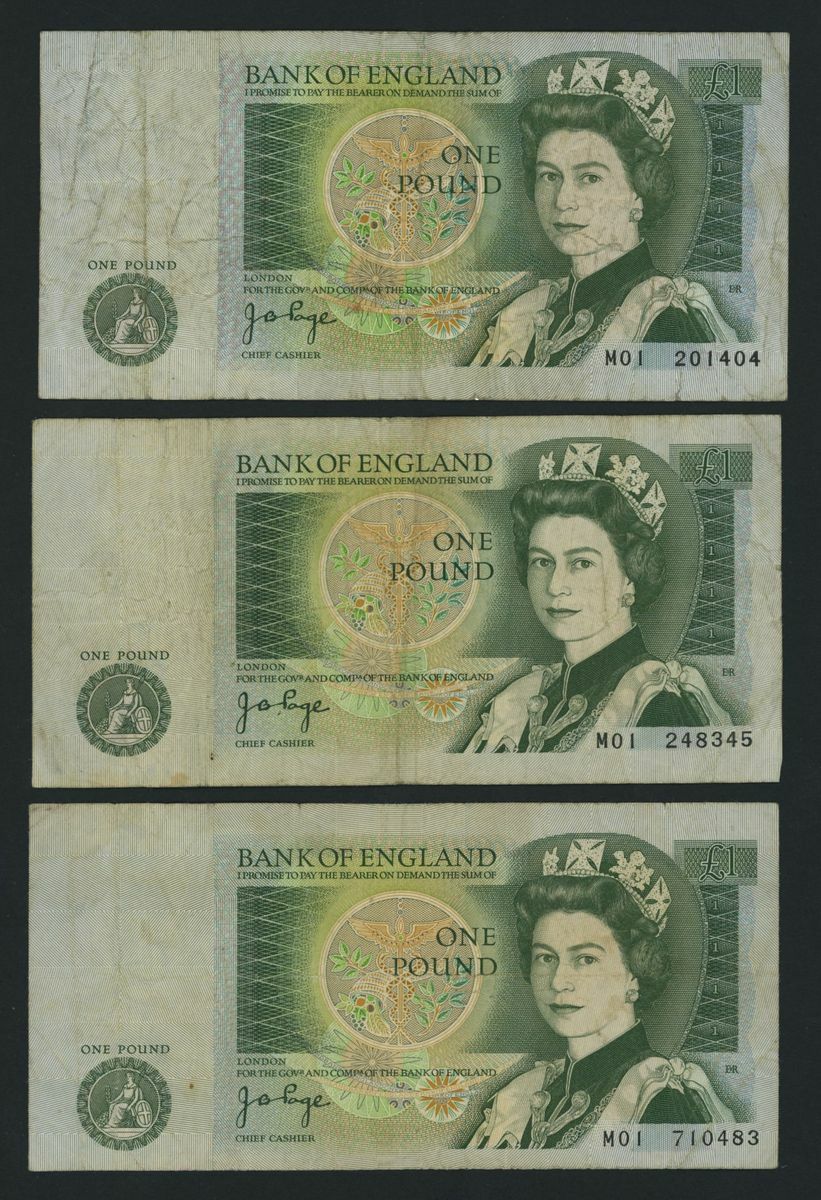 Bank of England, [3 notes] £1, London, ND (1978), J. B. Page, replacement issues,