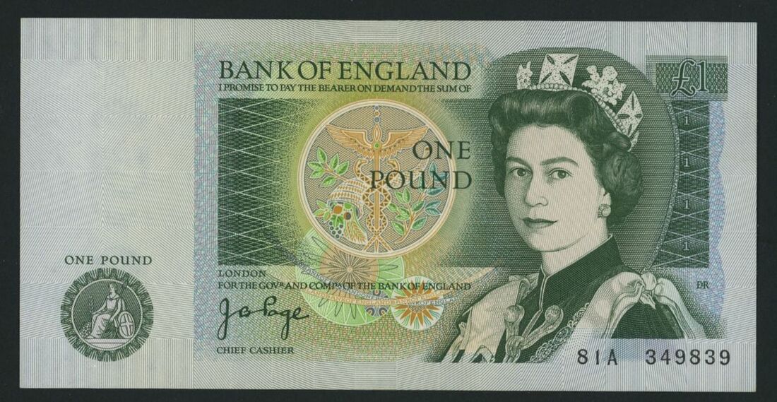 Bank of England, £1, London, ND (1978), no. 81A 349839, J. B. Page, experimental issue, first prefix