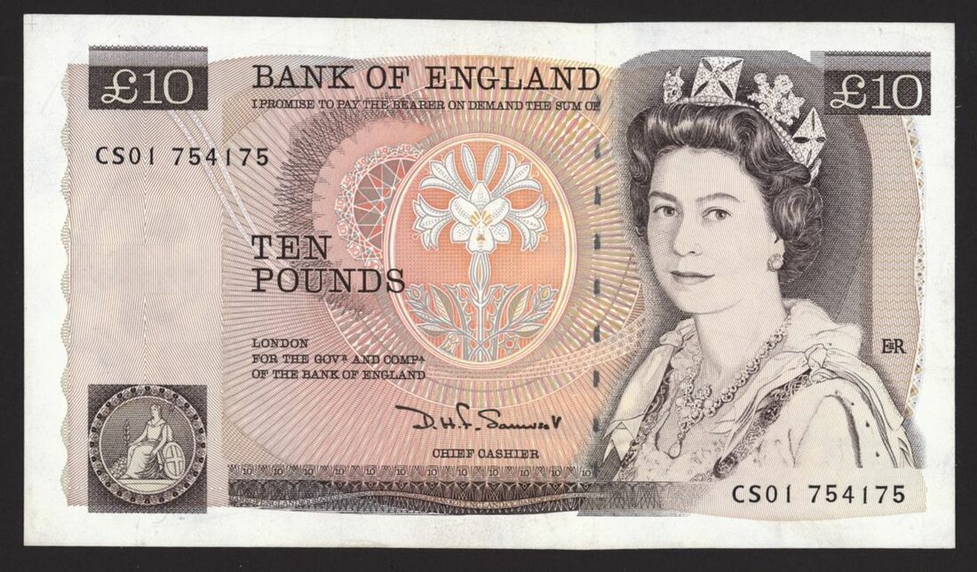 Bank of England, £10, London, ND (1987), no. CS01 754175, D. H. F. Somerset, stardust thread, first prefix