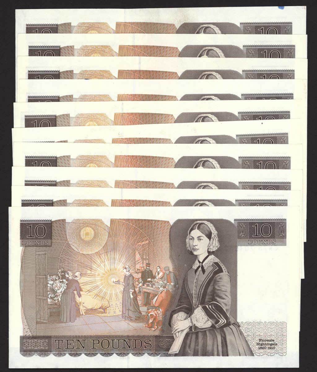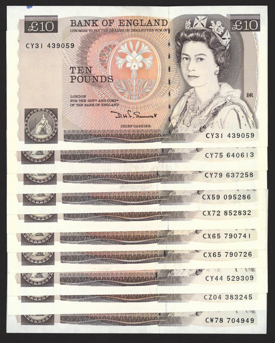 Bank of England, [25 notes] £10, London, ND (1987), D. H. F. Somerset, stardust thread