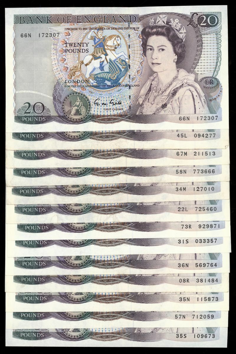 Bank of England, [25 notes] £20, London, ND (1988), G. M. Gill, (Pick 380e, EPM B355), very fine to extremely fine (25 notes)