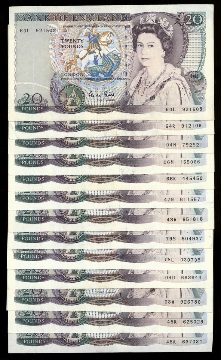 Bank of England, [25 notes] £20, London, ND (1988), G. M. Gill, (Pick 380e, EPM B355), very fine to extremely fine (25 notes)