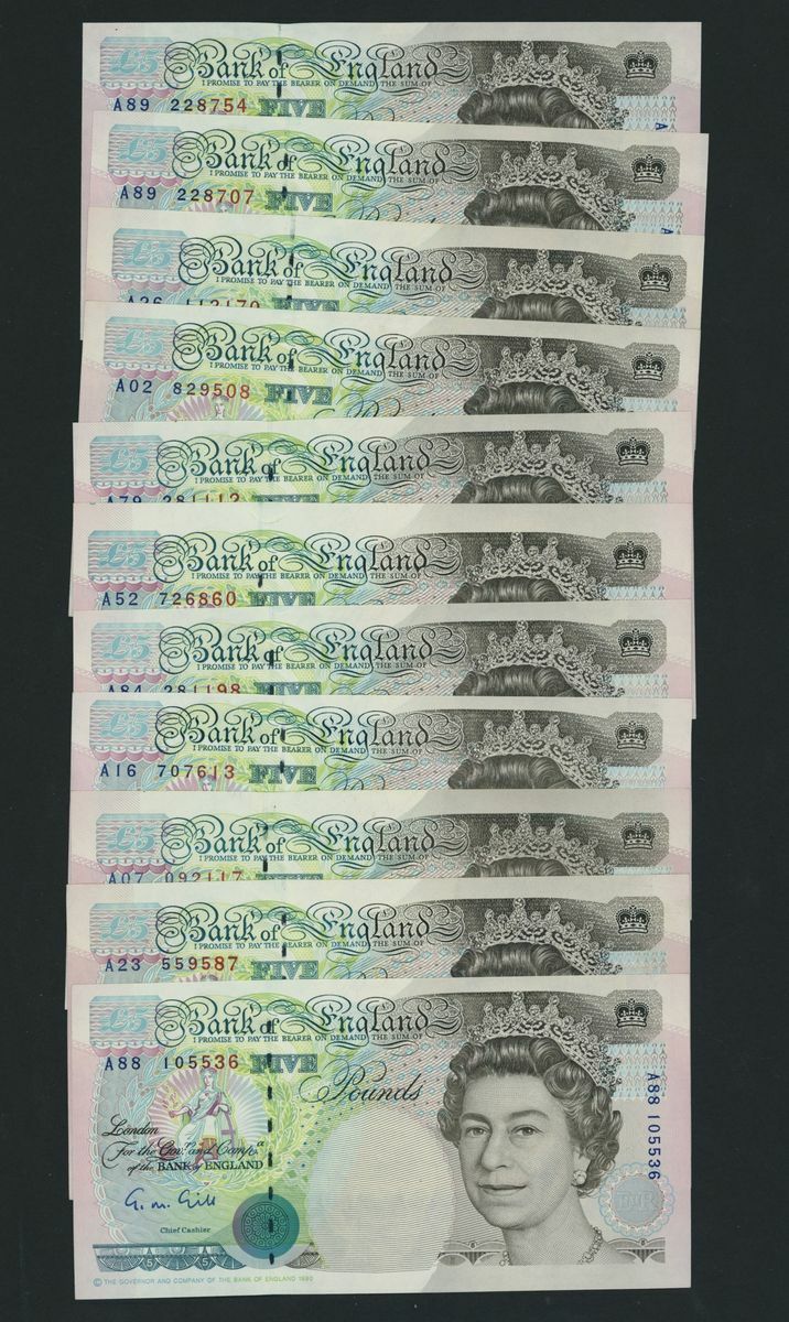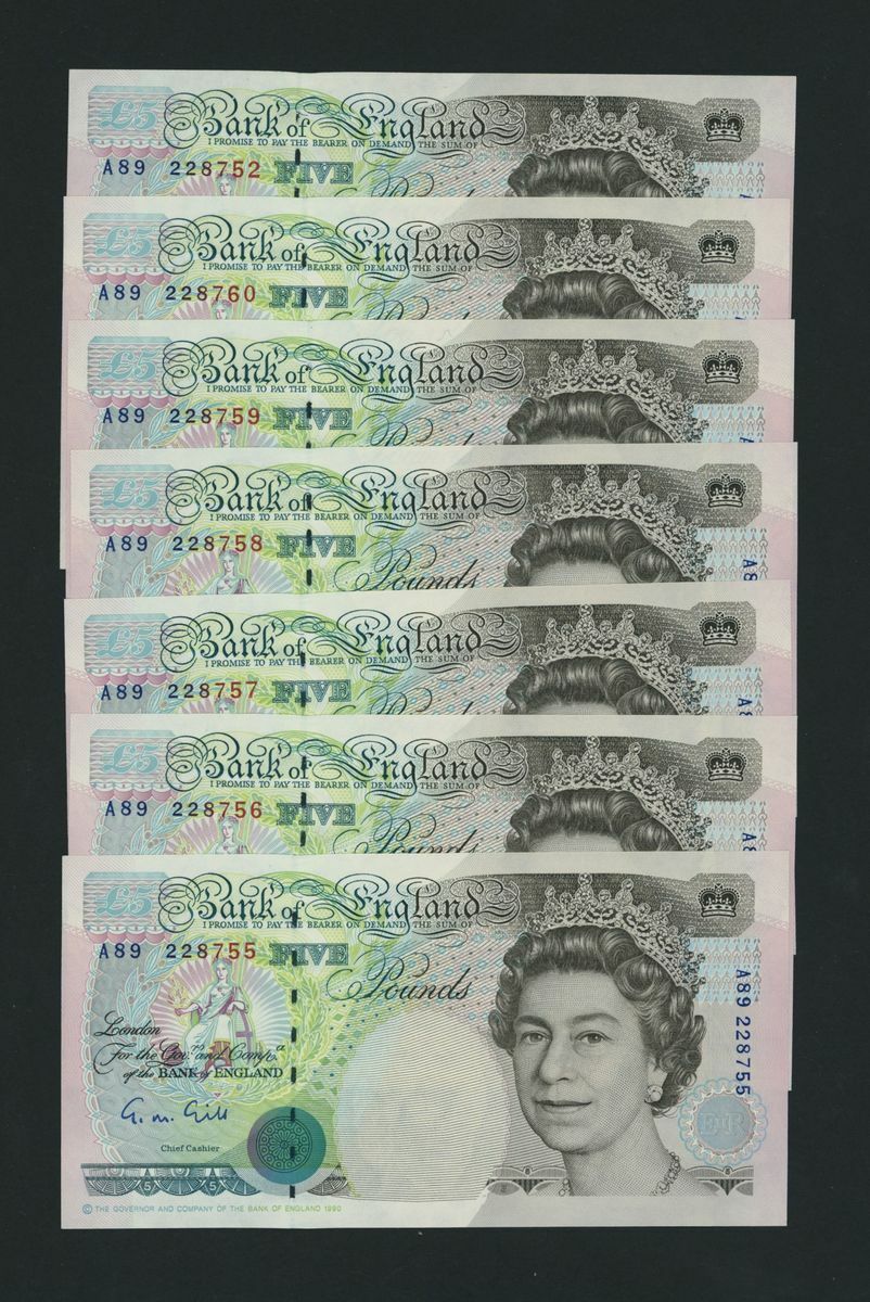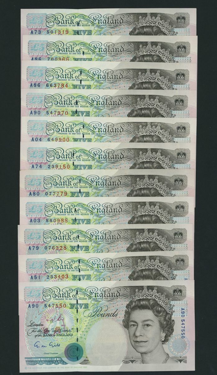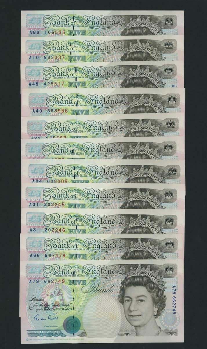 Bank of England, [40 notes] £5, London, ND (1990), G. M. Gill, all first prefix A