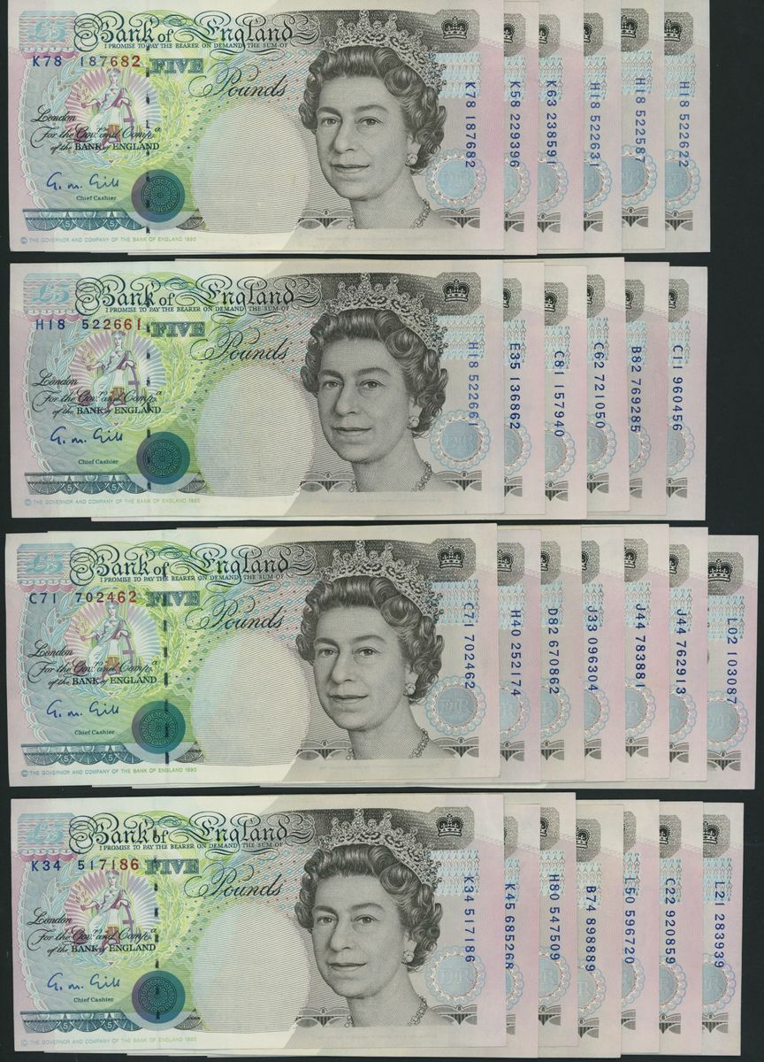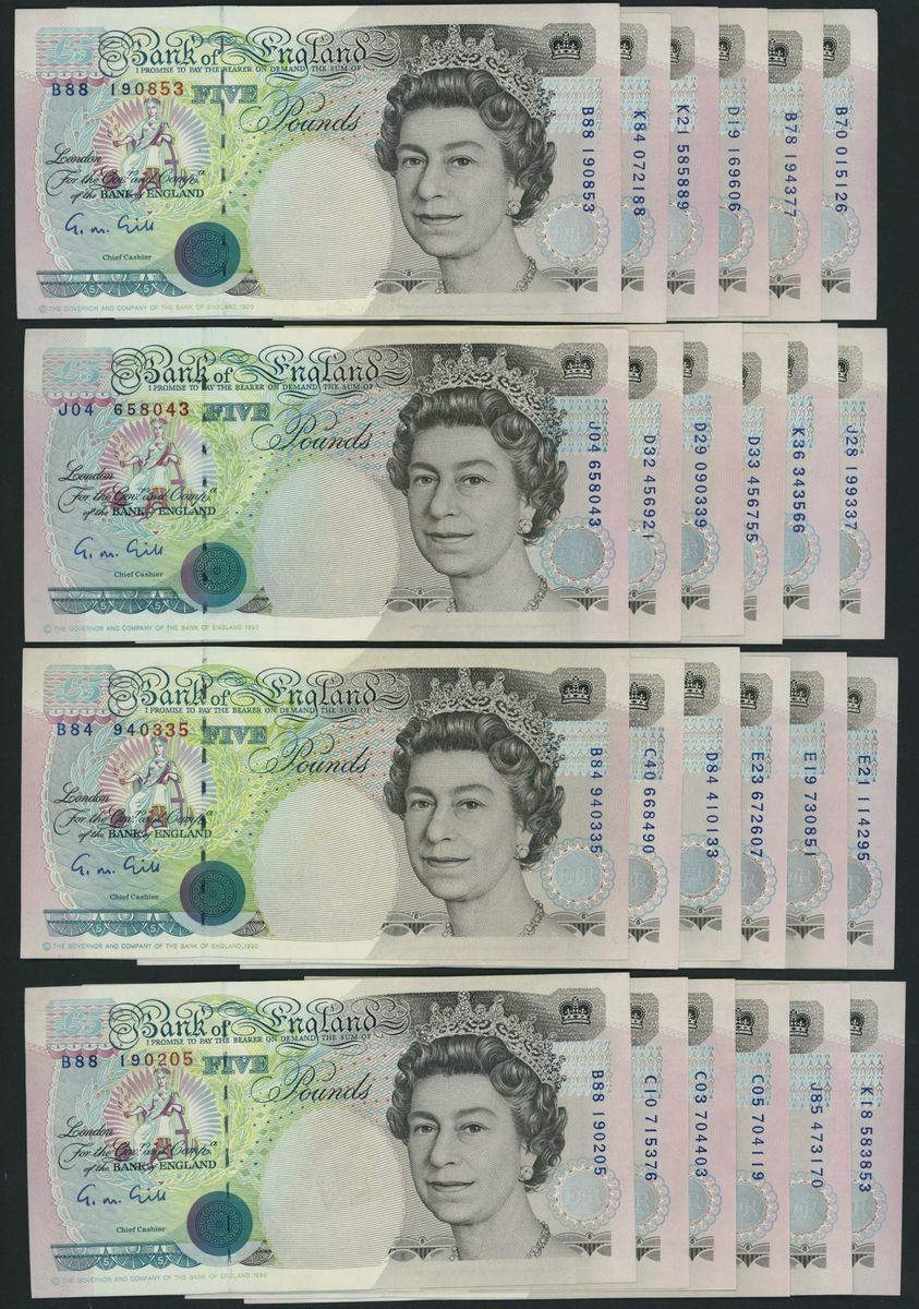 Bank of England, [50 notes] £5, London, ND (1990), G. M. Gill, (Pick 382a, EPM B357), extremely fine to uncirculated (50 notes)