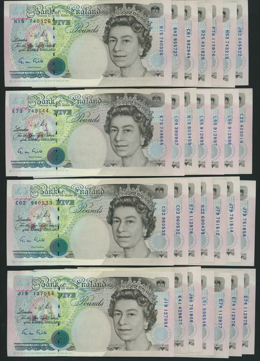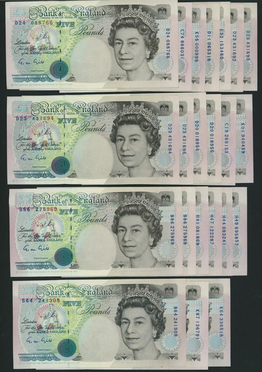Bank of England, [50 notes] £5, London, ND (1990), G. M. Gill, (Pick 382a, EPM B357), extremely fine to uncirculated (50 notes)
