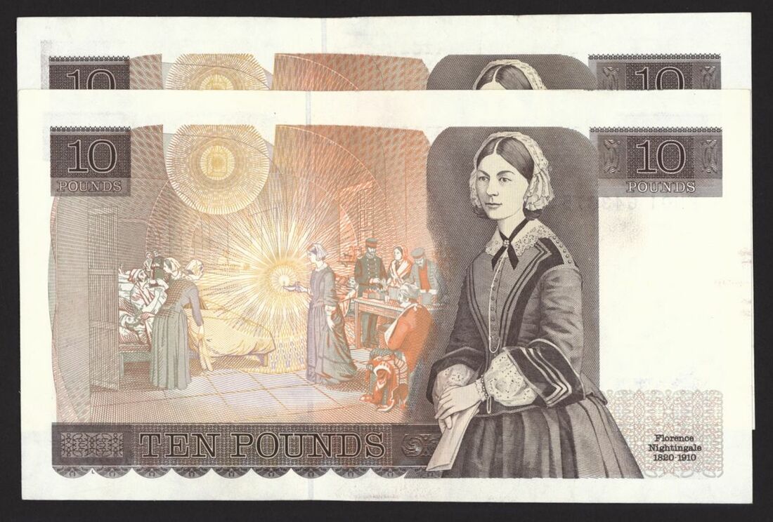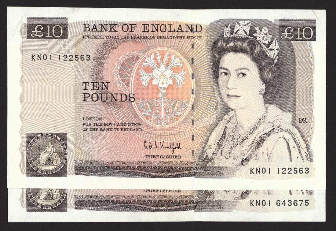Bank of England, [2 notes] £10, London, ND (1991), G. E. A. Kentfield, first prefix,