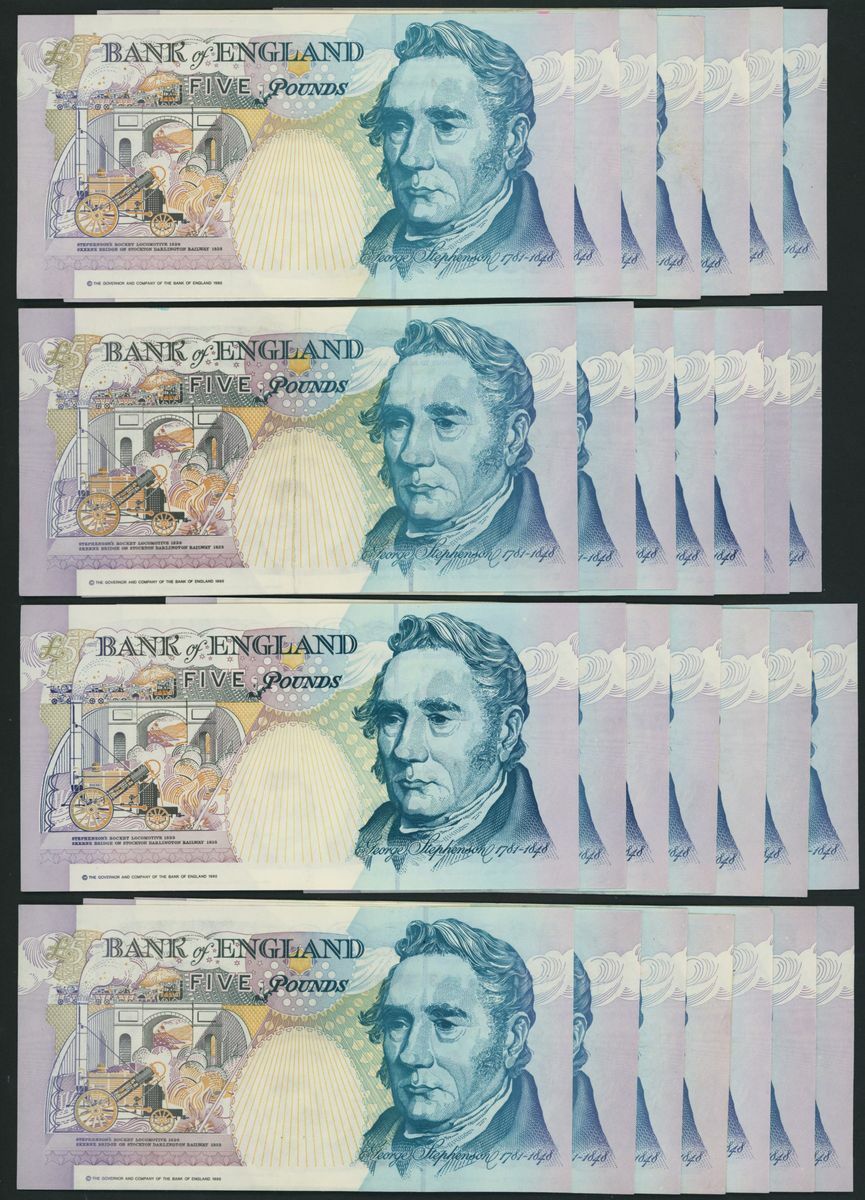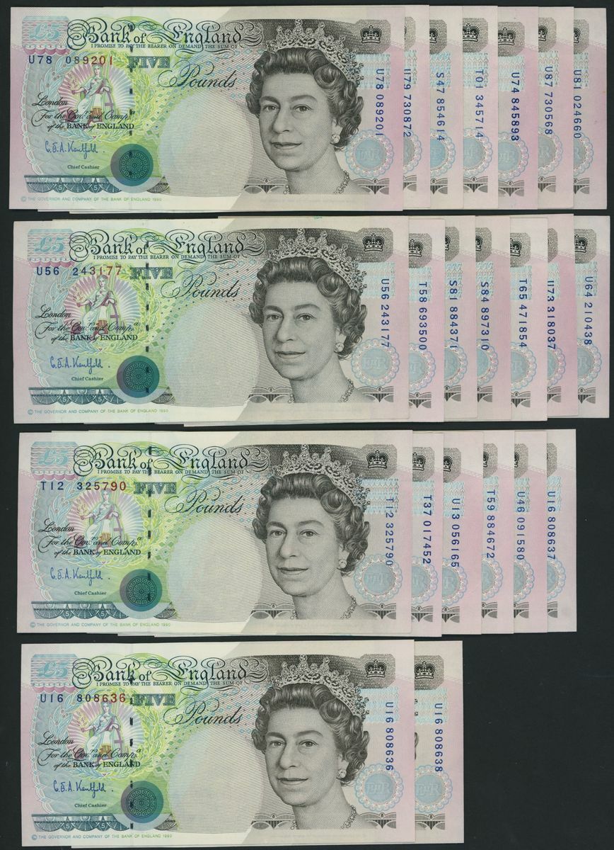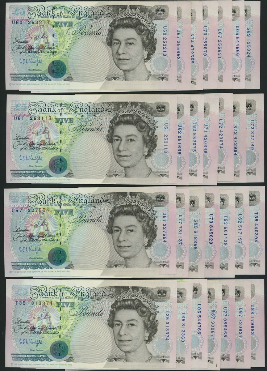 Bank of England, [50 notes] £5, London, ND (1993), G. E. A. Kentfield, prefixes R-W