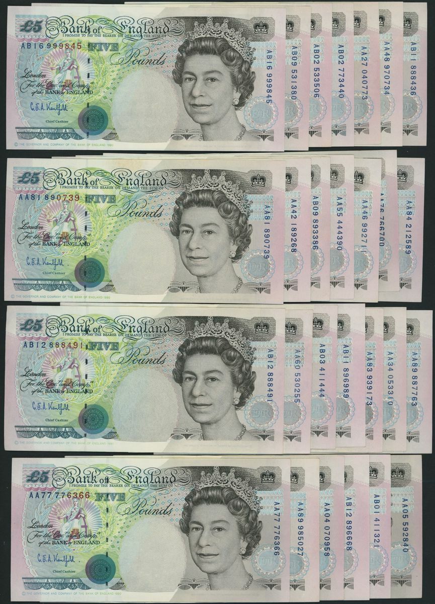 Bank of England, [40 notes] £5, London, ND (1993), G. E. A. Kentfield, prefixes AA & AB only