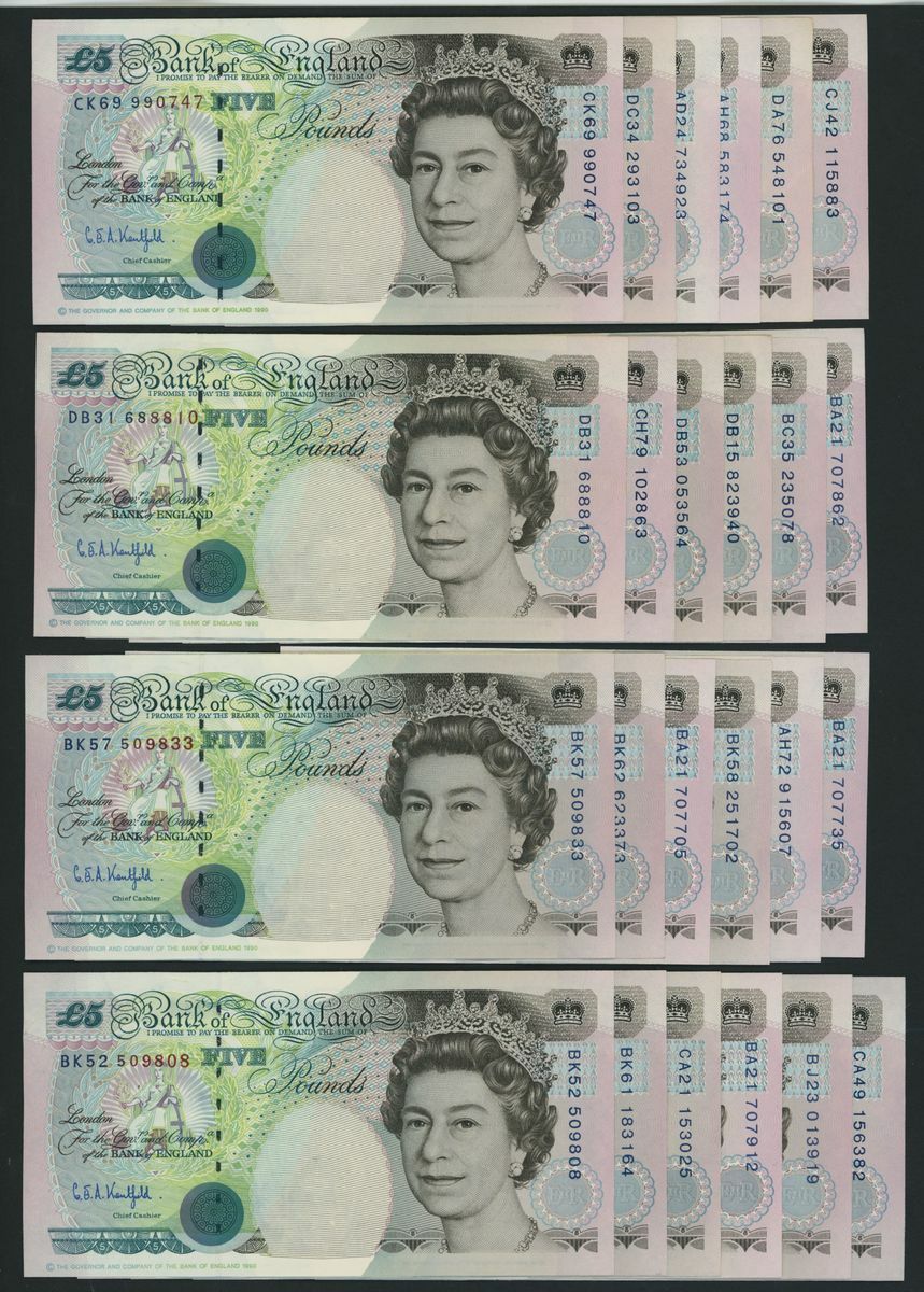 Bank of England, [50 notes] £5, London, ND (1993), G. E. A. Kentfield, (Pick 382b, EPM B364), extremely fine to uncirculated (50 notes)