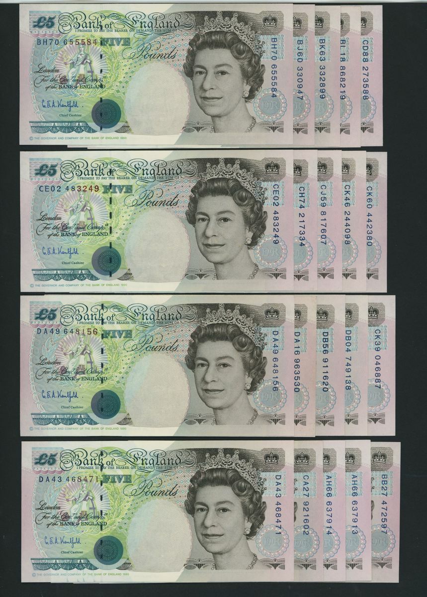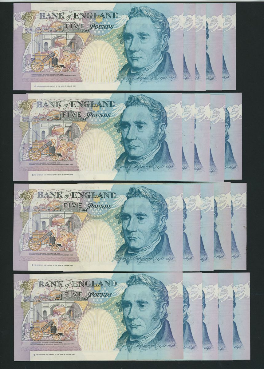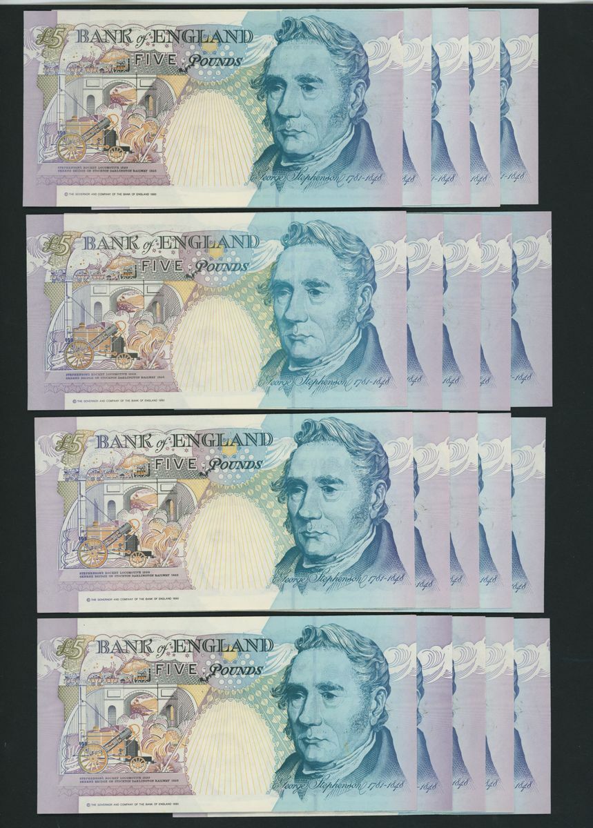 Bank of England, [40 notes] £5, London, ND (1993), G. E. A. Kentfield, (Pick 382b, EPM B364), extremely fine to uncirculated (40 notes)